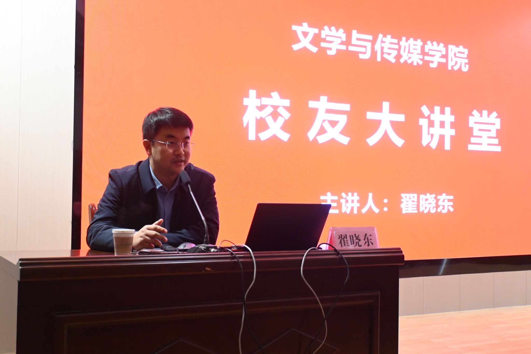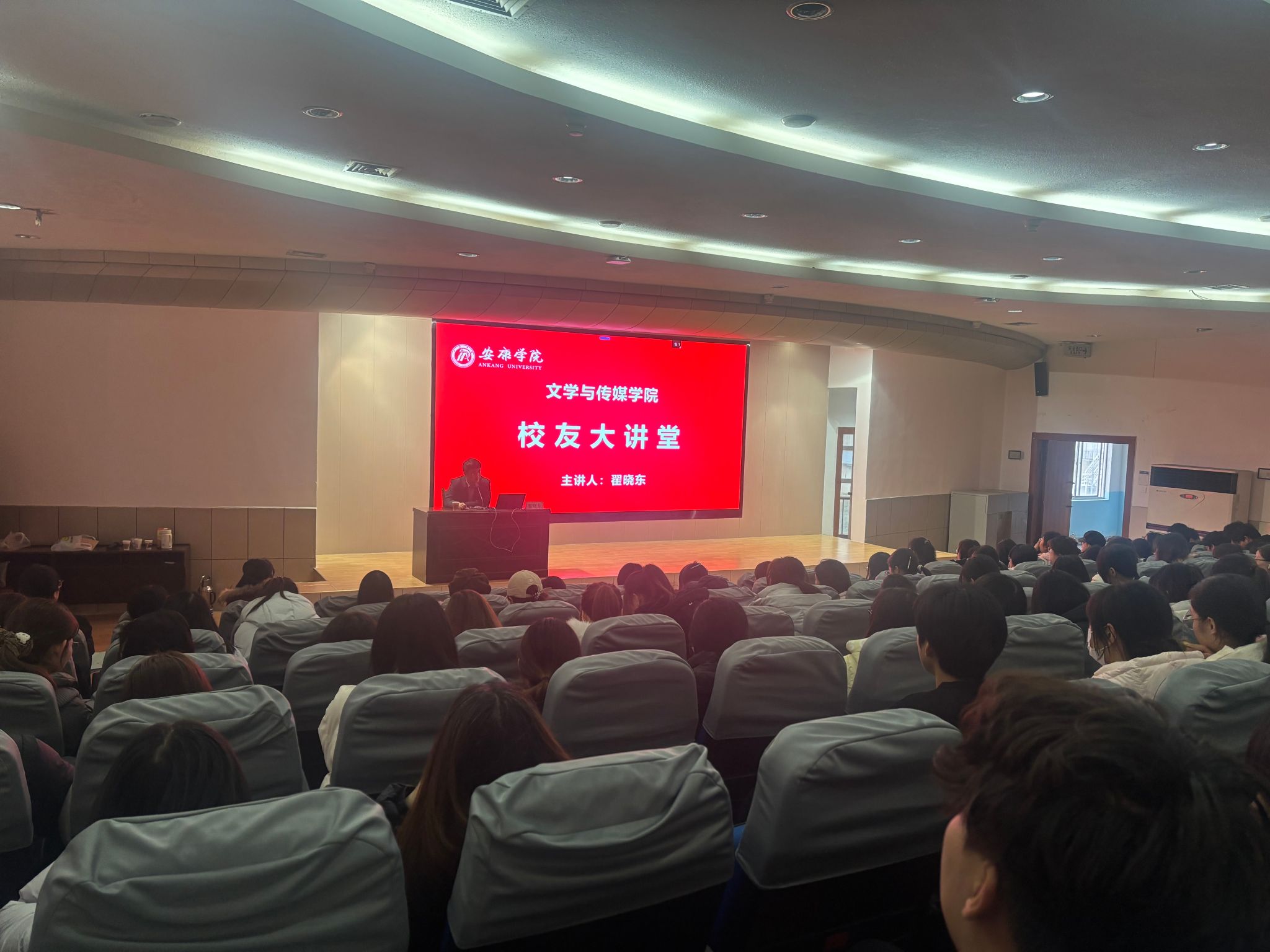 12月19日下午,pp电子网站在江南校区一号楼报告厅举办校友大讲堂活动。本次活动特邀陕西安康沁园春文化产业有限公司总经理、pp电子网站校友翟晓东担任主讲,pp电子官网党总支副书记侯红艳、学工办主任薛涛及学院部分学生代表参加。活动由侯红艳主持。