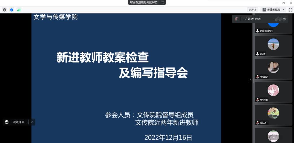 12月16日晚,pp电子网站教学督导组组长孙鸿组织召开新进教师教案检查及编写指导会,与会人员包括学院教学督导、近两年新进教师。