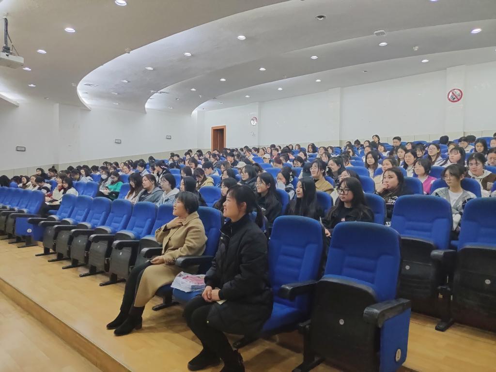 应pp电子网站邀请,汉滨初中高新校区教师王娅莉于2023年3月3日晚在江南校区一号教学楼报告厅为汉语言文学专业2020级全体学生讲授“教师职业特征与教师职业规划”。学院教学副院长李婷、汉语言文学系主任韩文霞到场聆听讲座。