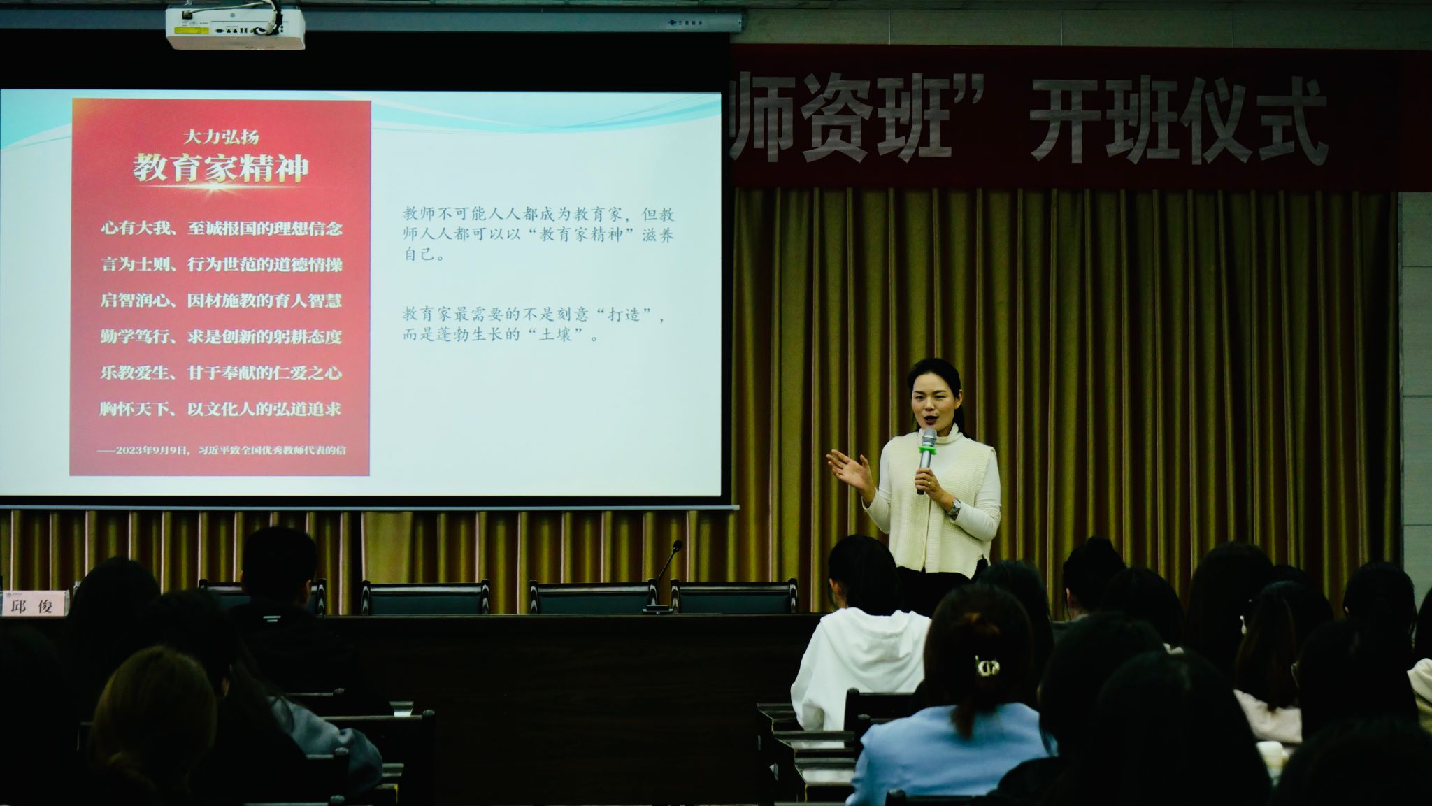 10月11日,为切实做到人才培养与行业的紧密对接,持续优化汉语言文学师范专业人才培养质量,pp电子网站第三届“中学语文卓越师资班”在江南校区图书馆六楼报告厅顺利开班。陕西省教学名师、基础教育领军人才邱俊,pp电子网站领导班子全体成员,第三届“中学语文卓越师资班”班主任和全体学生参加了开班仪式,开班仪式由副院长朱云主持。