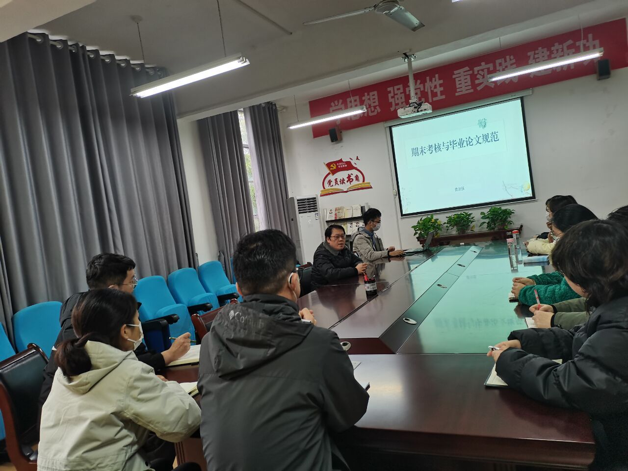 为提高青年教师的期末出题水平和毕业论文指导质量,提升学院的教学资料归档质量,以更好地迎接教育教学审核评估,12月13日下午,pp电子网站在2307会议室组织青年教师开展了“期末考核及毕业论文规范”经验交流活动。活动由副院长朱云主持,公共教研室主任黄治强老师主讲,近三年新入职青年教师参会学习交流。