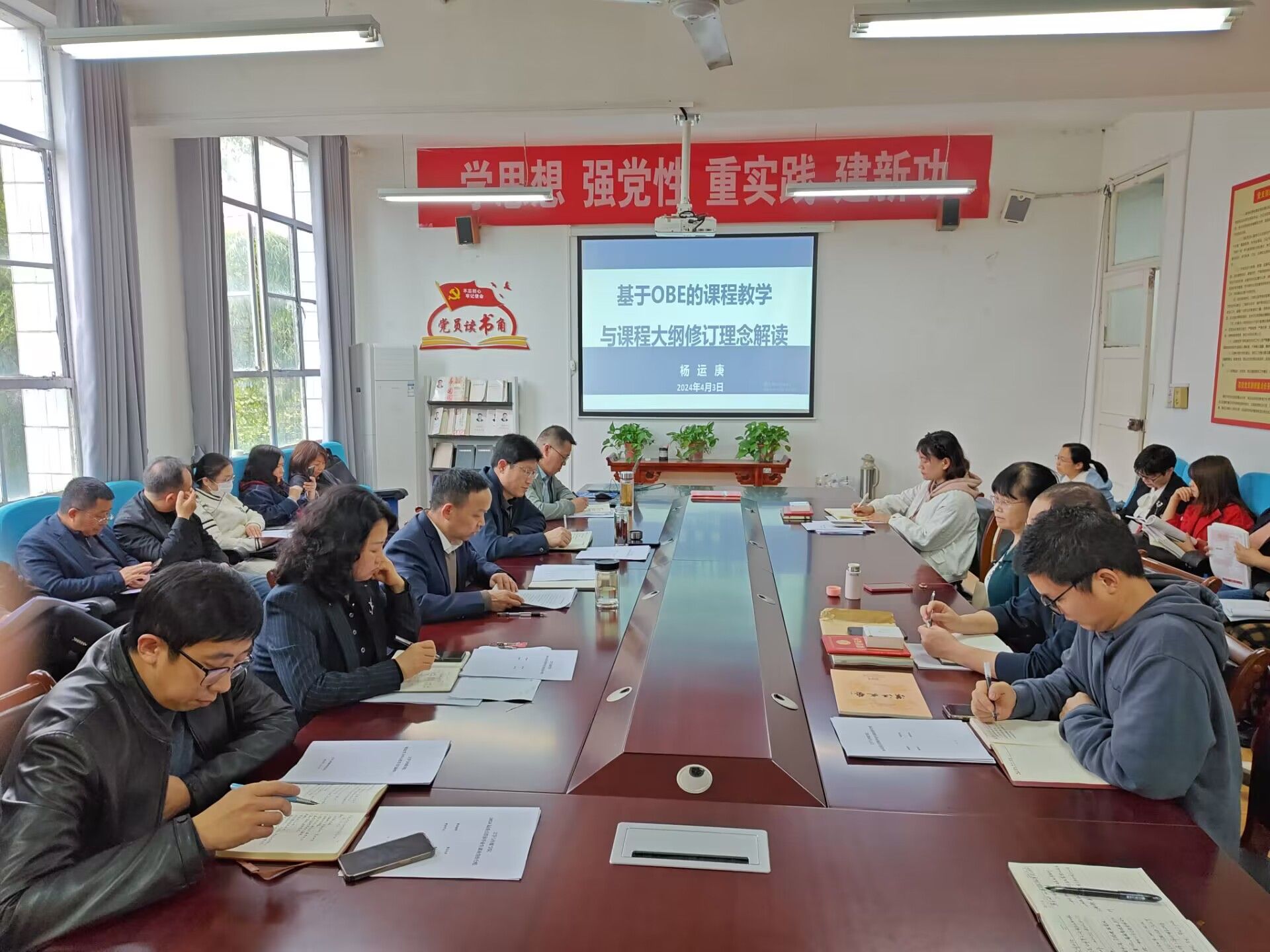 为进一步推进pp电子官网本科教育教学审核评估工作,深入理解OBE教学理念,提升pp电子官网教育教学整体水平,4月3日下午,pp电子网站在学院会议室组织全体教师开展专题学习,院长杨运庚为全体教师做了《基于OBE的课程教学与课程大纲修订理念解读》专题培训。