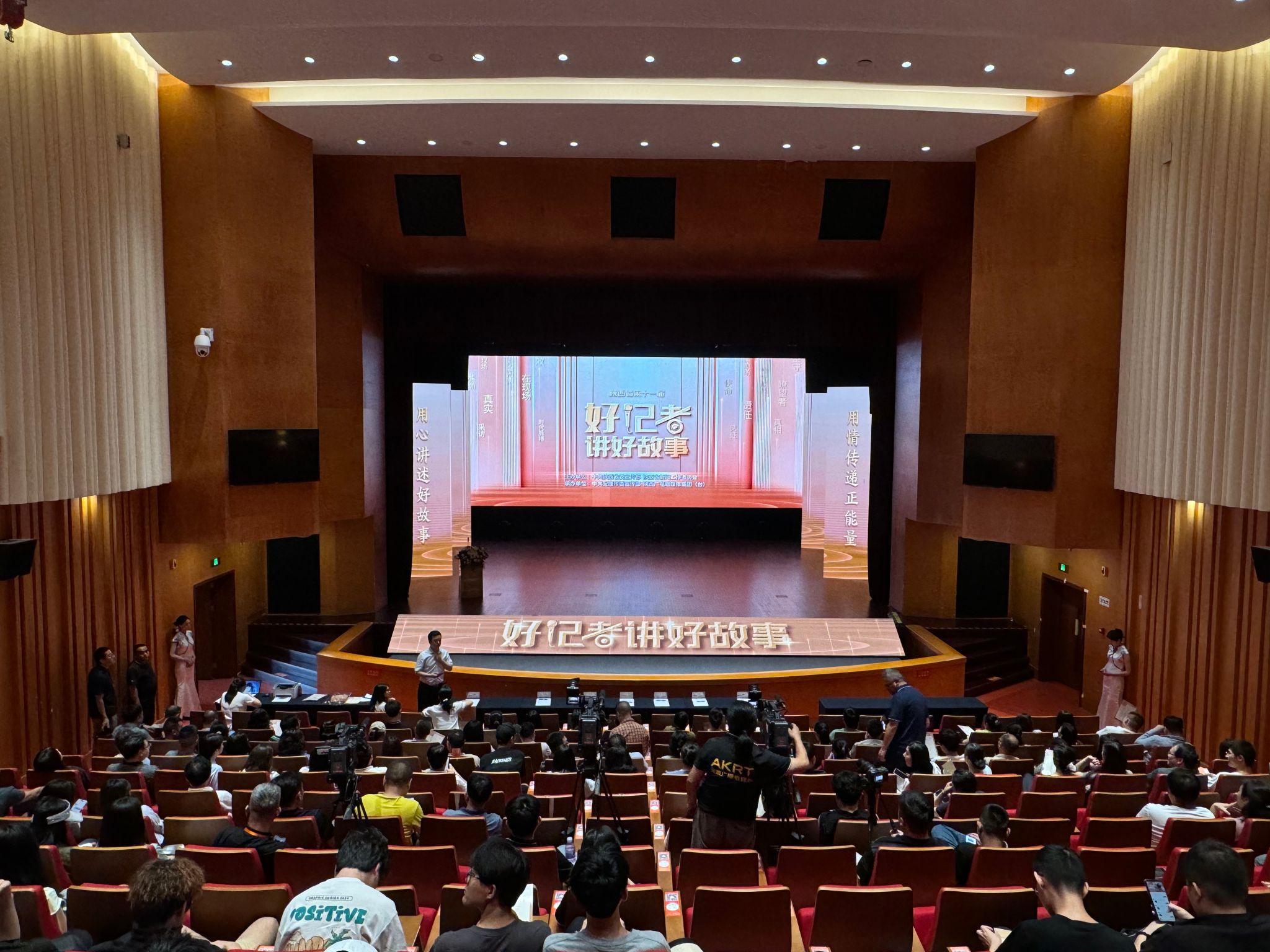 2024年6月12日上午九点,文学与传媒学院组织网络与新媒体专业2021级学生参加了由中共陕西省委宣传部、陕西新闻工作者协会主办的“好记者讲好故事”活动。本次活动邀请了来自各县区的36位记者,他们通过分享亲历故事和采访过程,让同学们深刻感受到了一线记者的奋斗与担当。