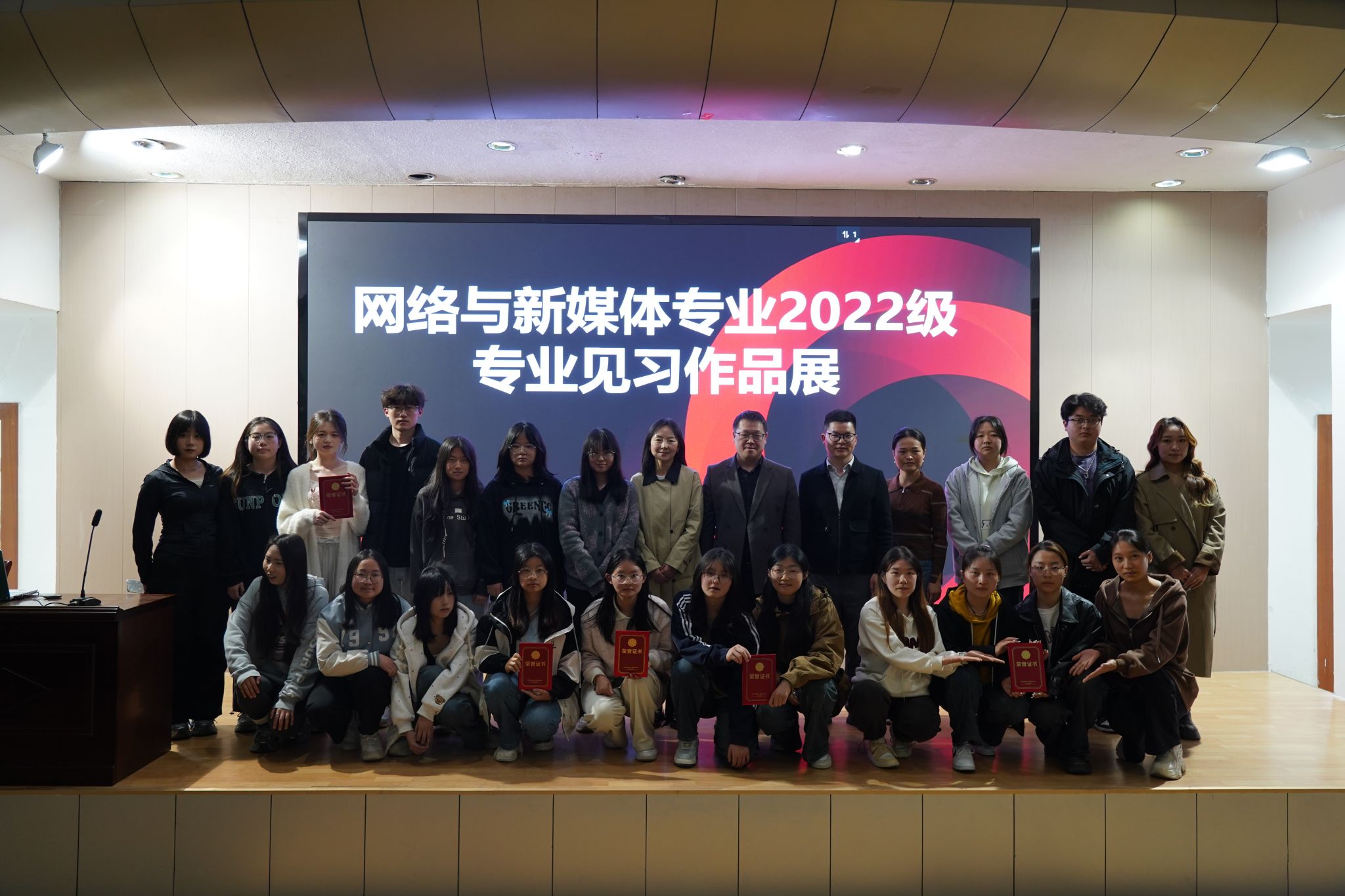 2025年4月2日下午,pp电子网站在江南校区1号楼报告厅成功举办了网络与新媒体专业2022级学生见习视频作品展。副院长朱云、系主任邸玲出席了此次活动,专业教师张建涛、刘锦、罗相如担任活动评委,网络与新媒体专业2022级、2023级、2024级以及秘书学2022级的学生们共同见证了这场视觉盛宴。