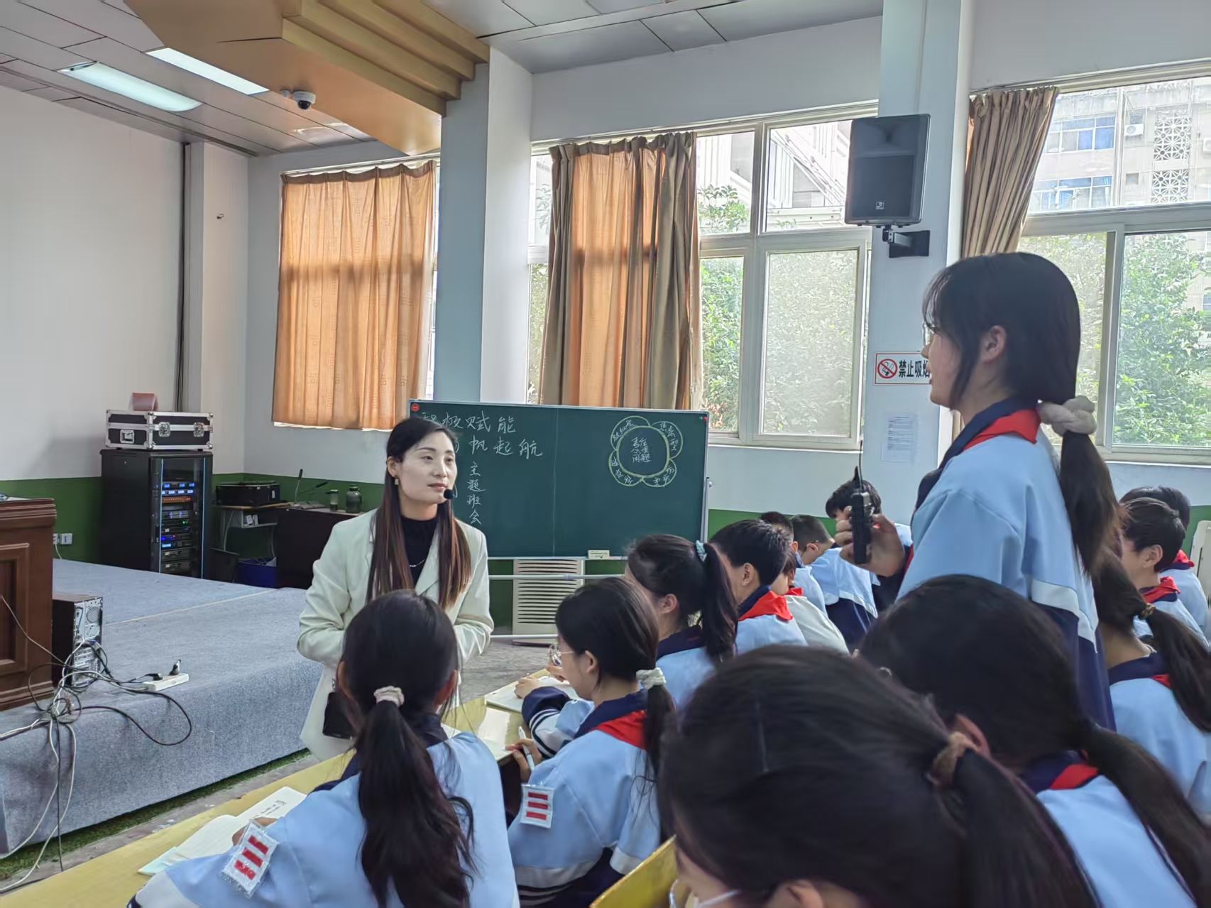 同时为深化师范生对基础教育的实践认知,提升综合育人能力,同学们还现场观摩了陈春莉老师执教的《积极赋能,扬帆起航》主题班会示范课。课堂上,陈老师通过情境创设、互动问答等多元形式,巧妙融入德育元素,生动展现了新时代主题班会的育人智慧与创新实践。随后,孔杯主任带来《从知识沃土到三尺讲台:筑牢教师职业的德育根基》专题讲座,以丰富案例结合理论阐释,系统解读教师德育素养的培育路径,深入剖析德育工作在教育教学中的核心地位,从理论与实践双维度,为同学们筑牢教师职业的德育理念,助力其成长为德才兼备的新时代教育工作者。