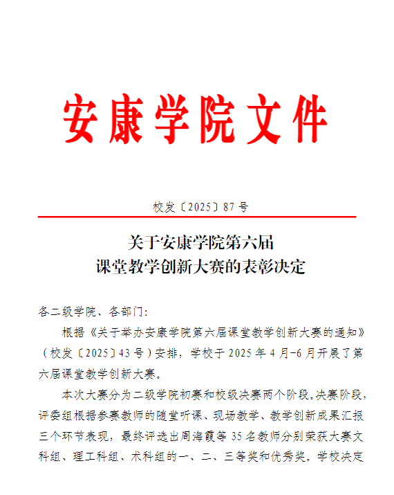 据悉,本届大赛历时两个月,经系(教研室)初赛、院级复赛的层层选拔,最终55位选手脱颖而出成功进入校级决赛。决赛分为文科组、理工科组、术科组三个组别,设置“随堂听课+现场教学展示+教学创新成果汇报”三个考核环节。参赛教师们教态自然、精神饱满,教学模式和教学组织过程推陈出新,教学方法和手段丰富多样、科学有效,现代教育技术与传统课堂深度融合,教学效果追求学生学习成效的达成,充分展示了我校持续推进课程建设和“课堂革命”的成果,践行了“以学为中心”的课堂教学创新理念。
