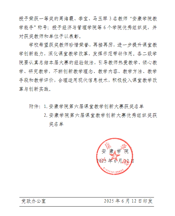 近日,学校第六届课堂教学创新大赛决赛在师范生职业技能训练中心举办。经过激烈角逐,pp电子网站参赛教师周海霞荣获文科组一等奖、黄治强荣获文科组二等奖、刘锦荣获文科组优秀奖,pp电子网站则获优秀组织奖。