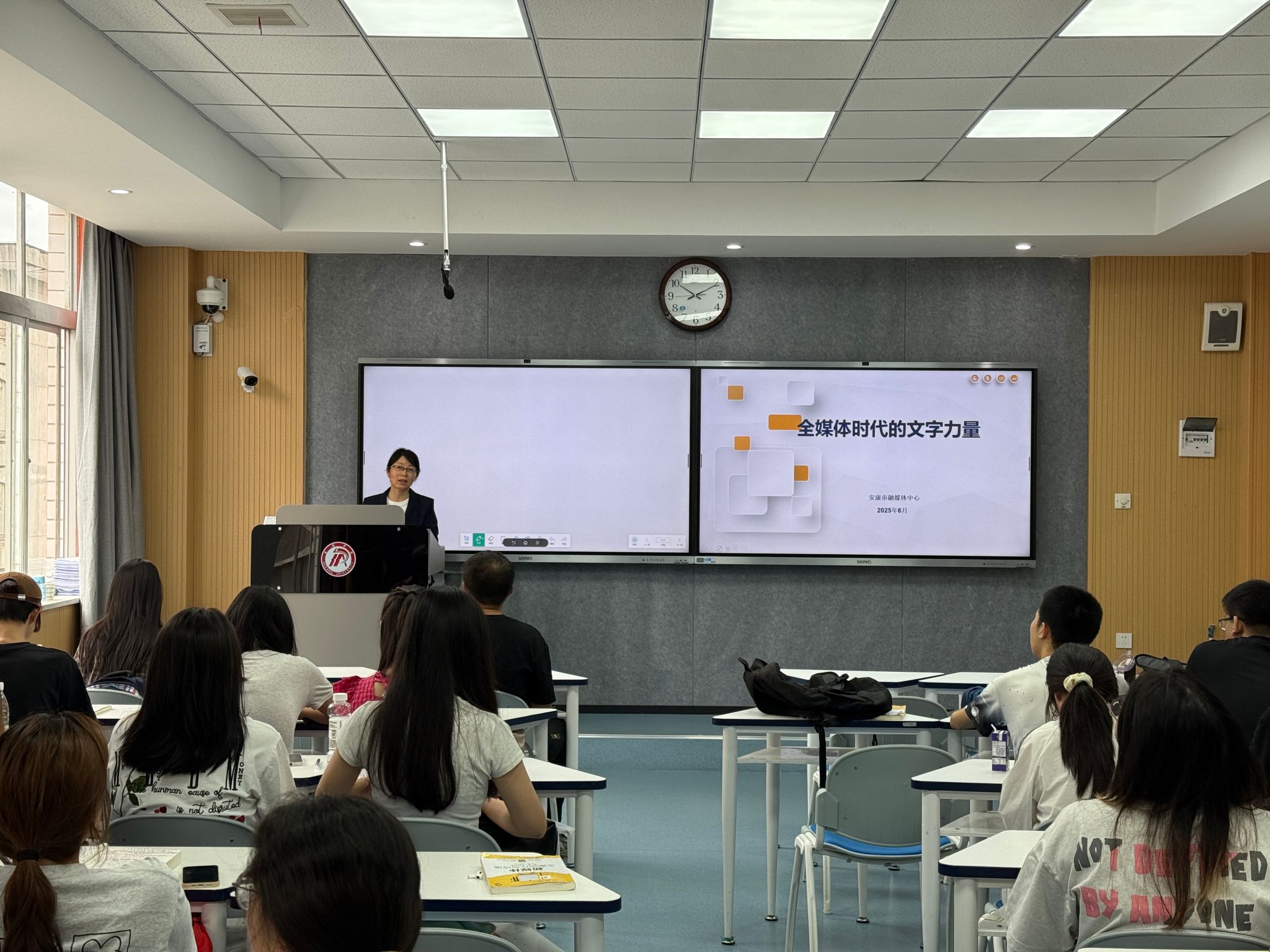 马莉老师以《短视频的策划与内容生产》为题,结合“安康综合广播”抖音号的实战创作与运营经验,剖析了爆款短视频的核心特征与潜力要素。并且特别强调了文案在短视频创作中的关键地位。授课过程中,她通过实例拆解,清晰展示了优质文案如何精准提炼信息、触发情感共鸣、引导用户互动,从而驱动短视频的成功传播。