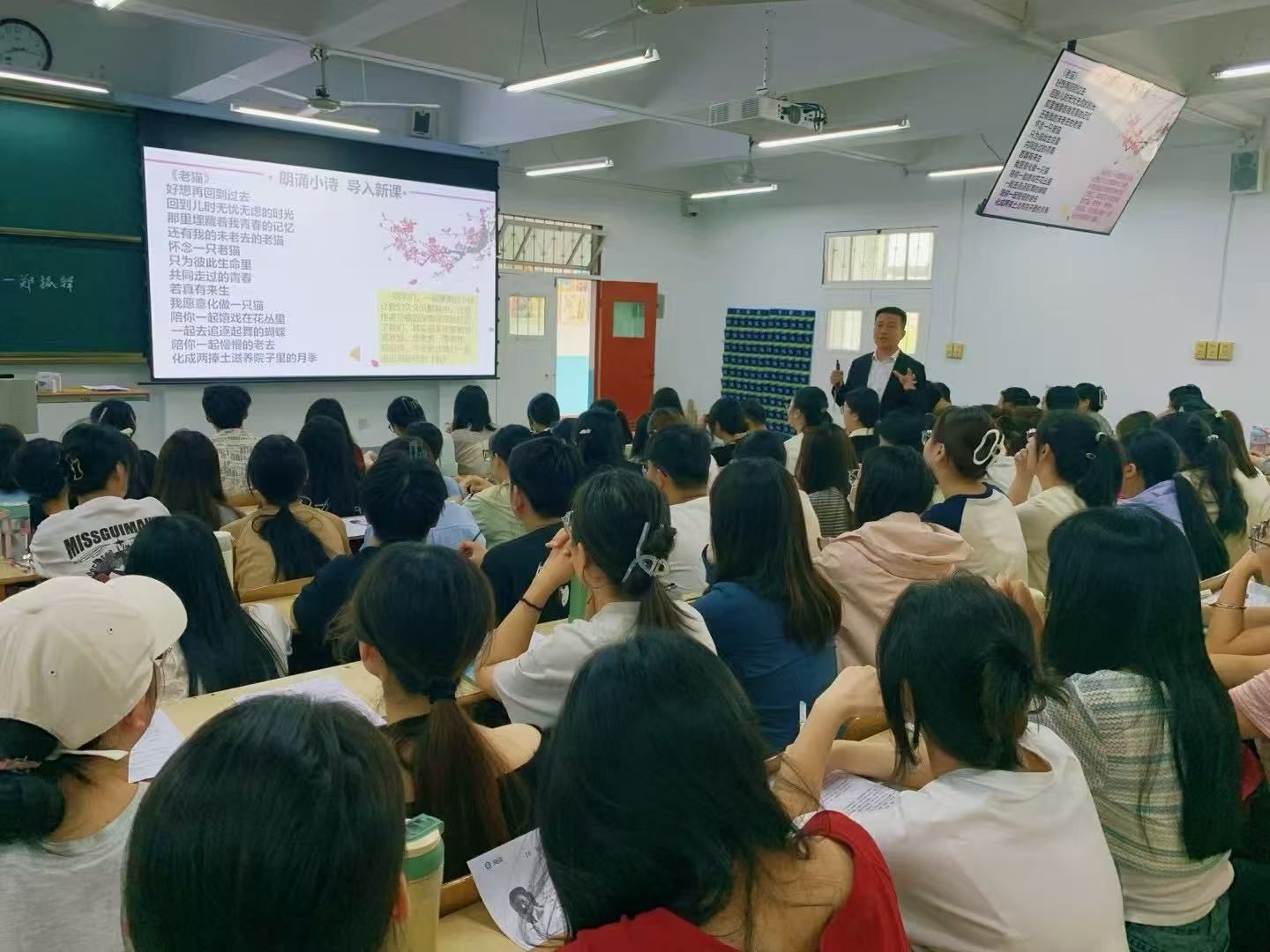 按照学校双师课程建设相关要求,根据语文教材分析与教学设计课程双师教学计划,4月15日、4月22日、4月29日、5月6日,紫阳县师训中心主任、陕西省语文学科带头人刘勇,汉阴县教研室副主任、省级教学能手蒋宇浩,汉滨初级中学大桥路校区校长助理、省级教学能手柏虎锋,汉滨初级中学省级教学能手张丹四位老师分别应邀为pp电子官网汉语言文学专业2022级1班和2班学生授课,校内任课教师张格瑄随堂听课并参与教学活动。