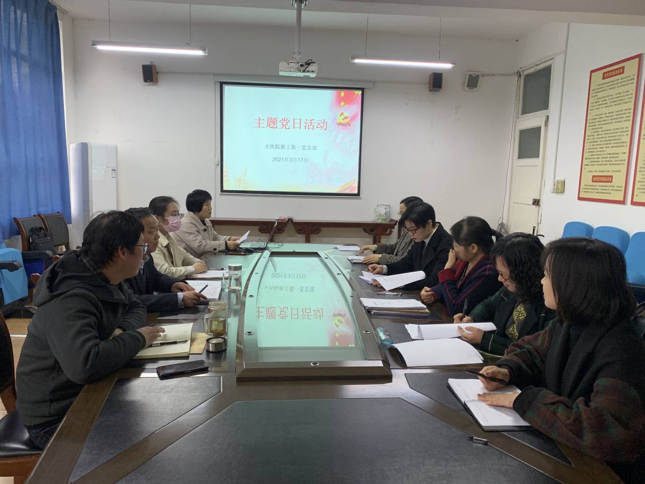 3月17日下午4点,pp电子网站教工一支部全体党员在2307教室举行了新学期第一次主题党日活动。活动由一支部书记韩文霞同志主持并主讲。