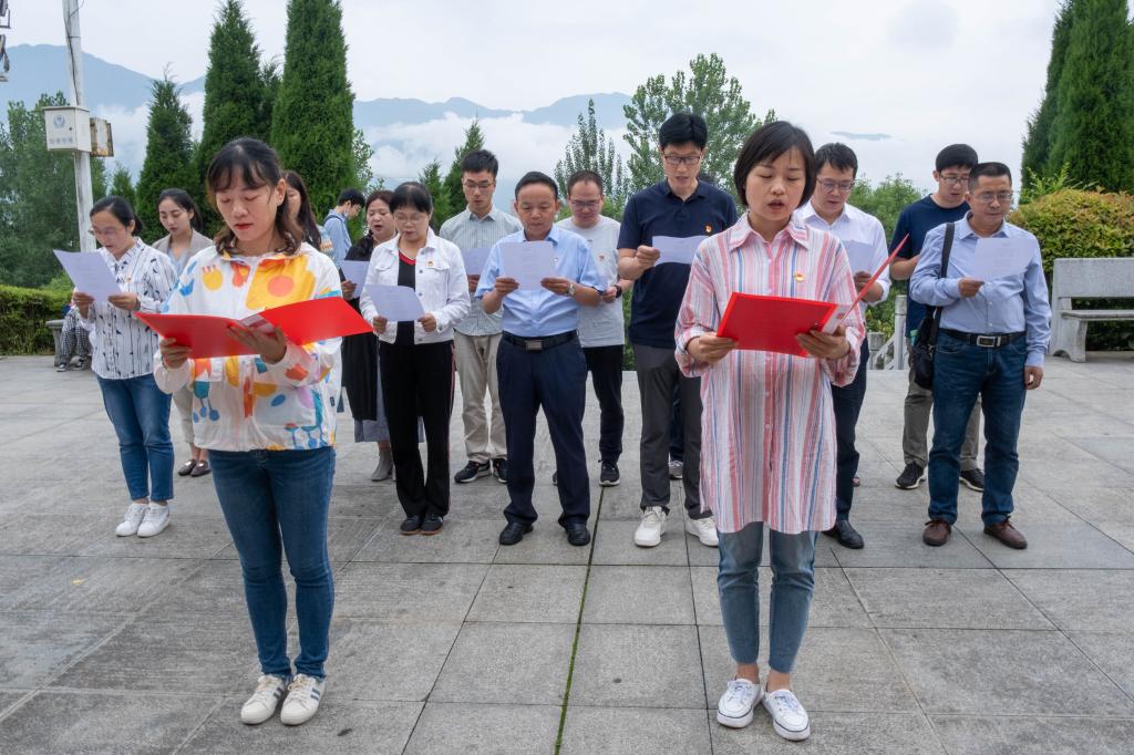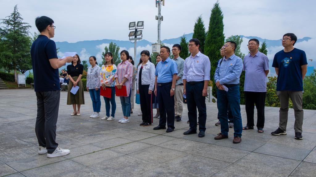 在“七·一”建党百年华诞即将来临之际,为深入开展党史学习教育,充分利用好周边红色资源,教育广大党员筑牢信念之基,赓续红色基因,6月19日,pp电子网站党总支组织师生党支部党员前往汉阴县陕南人民抗日第一军纪念碑广场开展“寻访红色足迹 传承革命精神”主题党日活动。主题党日活动由党总支组织委员邸玲主持。