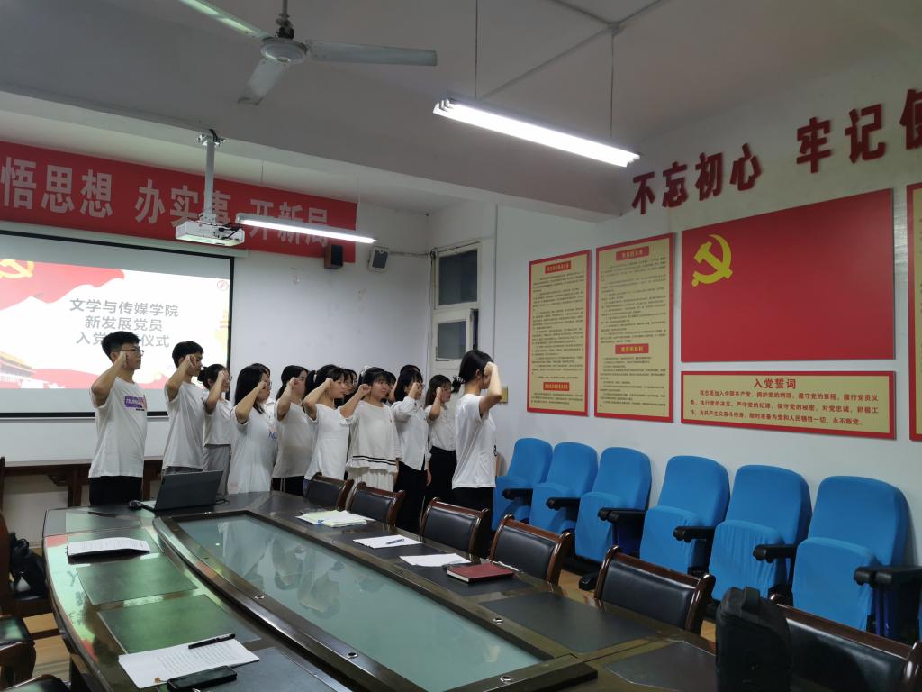 9月23日晚,pp电子网站党总支在江南校区2307教室举行了预备党员入党宣誓仪式,党总支副书记杨海蓉、学生第一党支部书记彭潇、学生第二党支部书记薛涛、各支部委员及16名预备党员参加了此次入党宣誓仪式。会议由学生第二党支部书记薛涛主持。