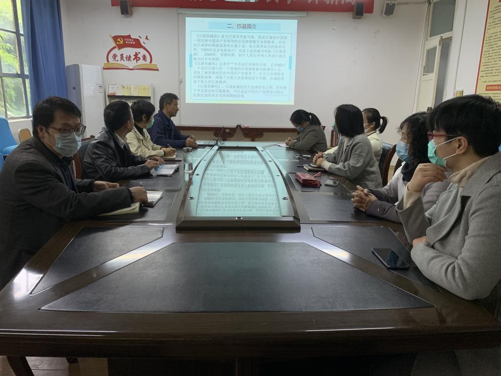 2021年11月3日下午三点,pp电子网站教工一支部党员在2307会议室继续开展“现当代文学中的党史”党员读书专题活动,本次活动由一支部党员郭家平同志为大家分享《吕梁英雄传》中的党史。