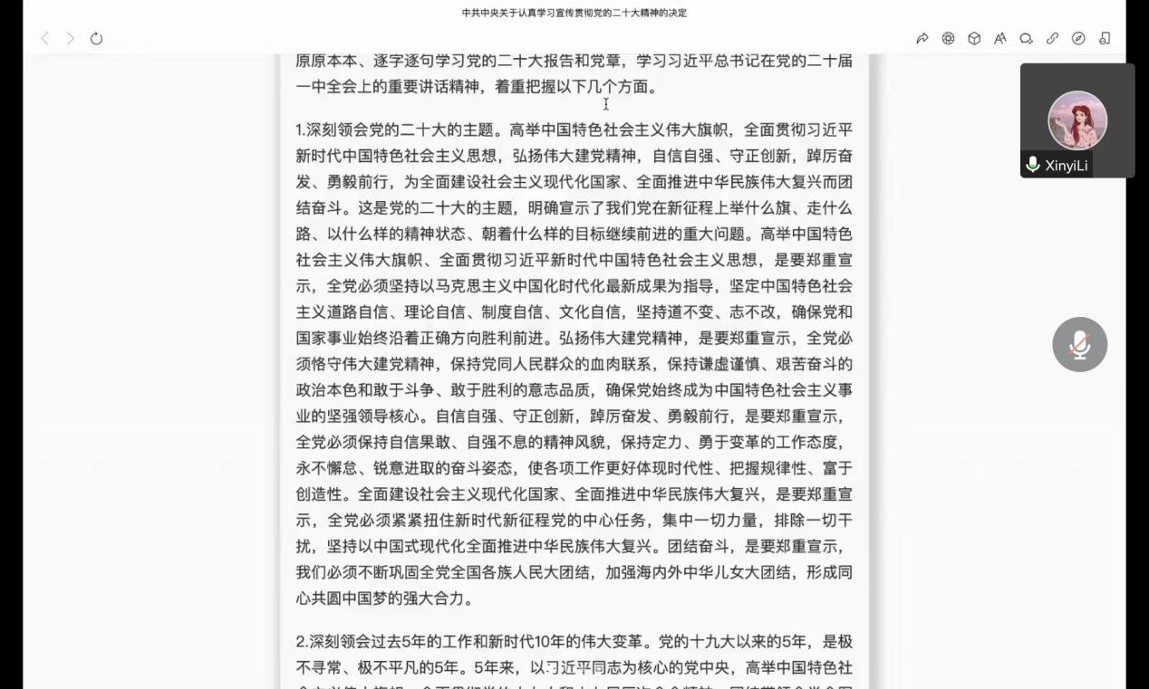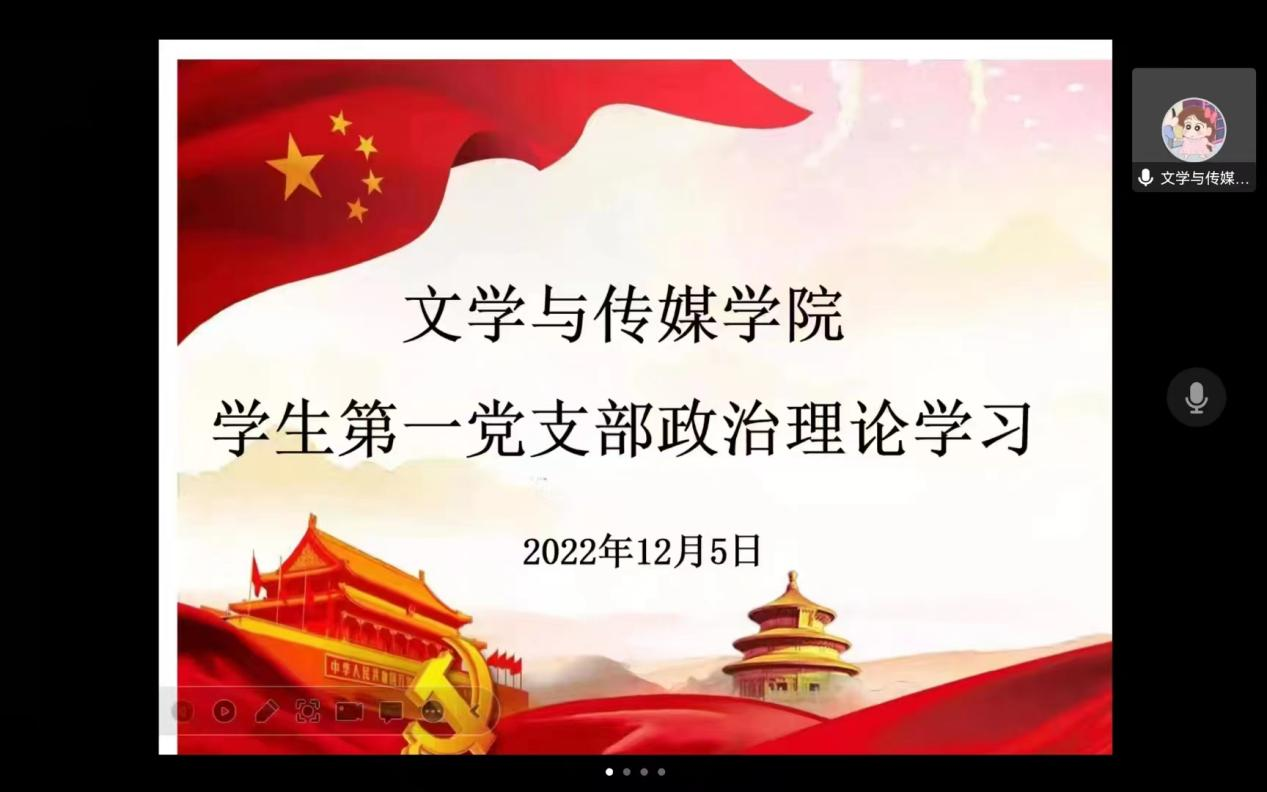 12月5日,pp电子网站学生第一党支部召开线上政治理论学习会,会议学习传达《中共中央关于认真学习宣传贯彻党的二十大精神的决定》精神,pp电子网站学生第一党支部全体党员参加会议。会议由第一党支部书记李欣逸主持。