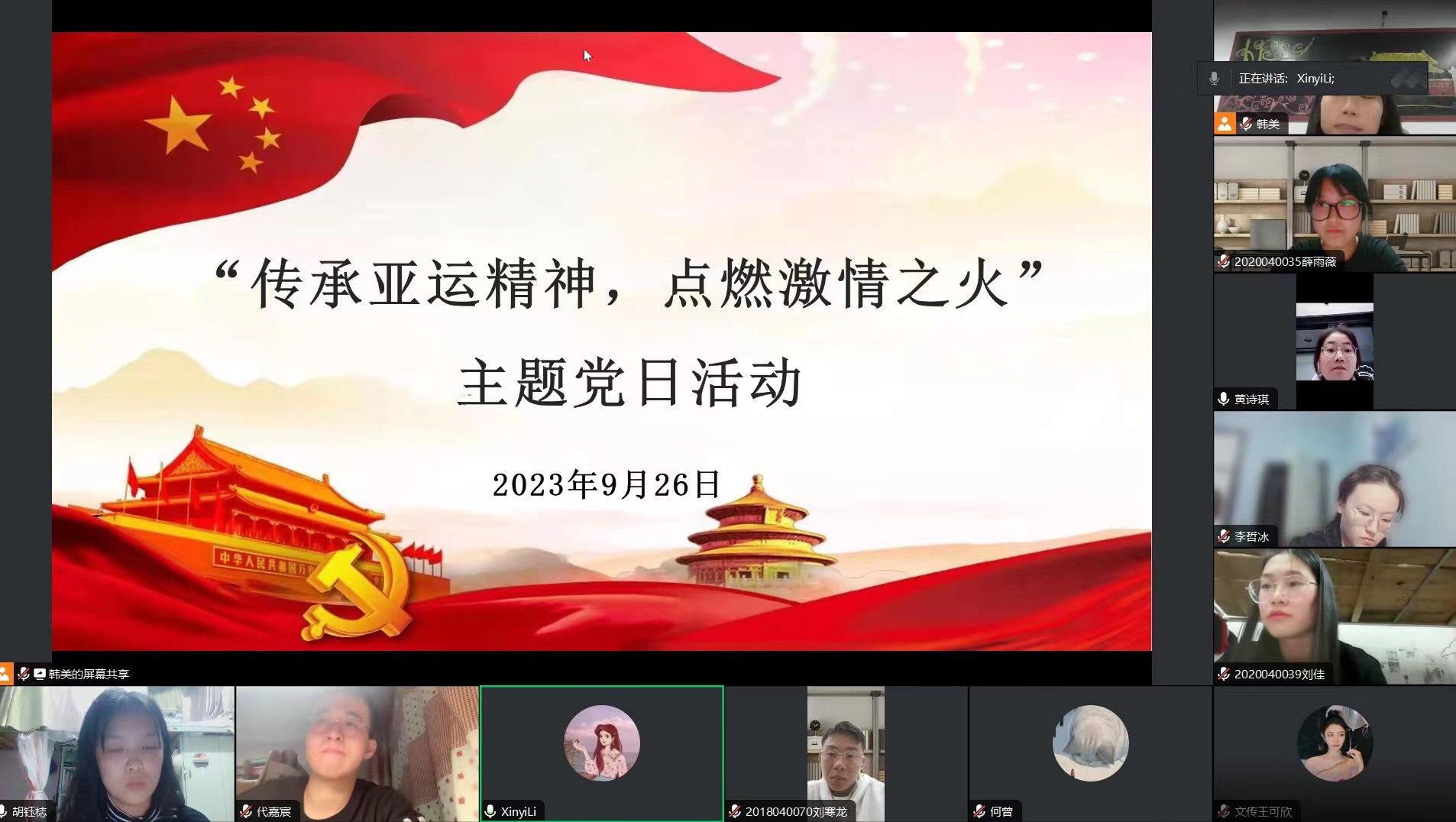 9月26日晚,pp电子网站学生第一党支部召开了“传承亚运精神,点燃激情之火”特色主题党日活动。本次活动由pp电子网站第一党支部书记李欣逸主持,支部全体党员参会。
