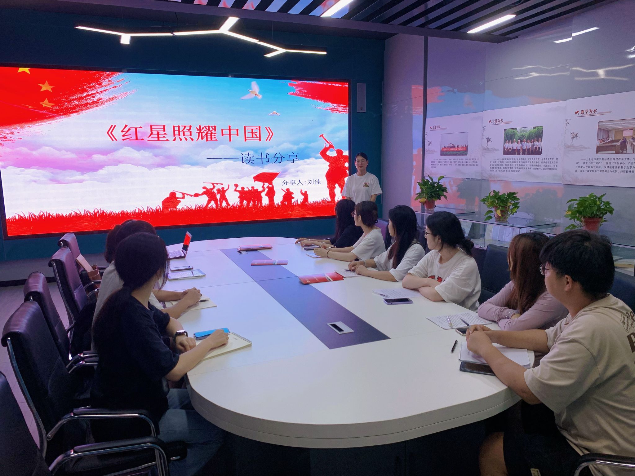 6月21日下午,pp电子官网教工一支部党员教师张格瑄召集所联系的入党积极分子、培养对象和预备党员在2309教室围绕美国记者埃德加·斯诺创作的红色经典纪实文学作品《红星照耀中国》展开阅读与教学分享活动,活动由张格瑄老师主持。