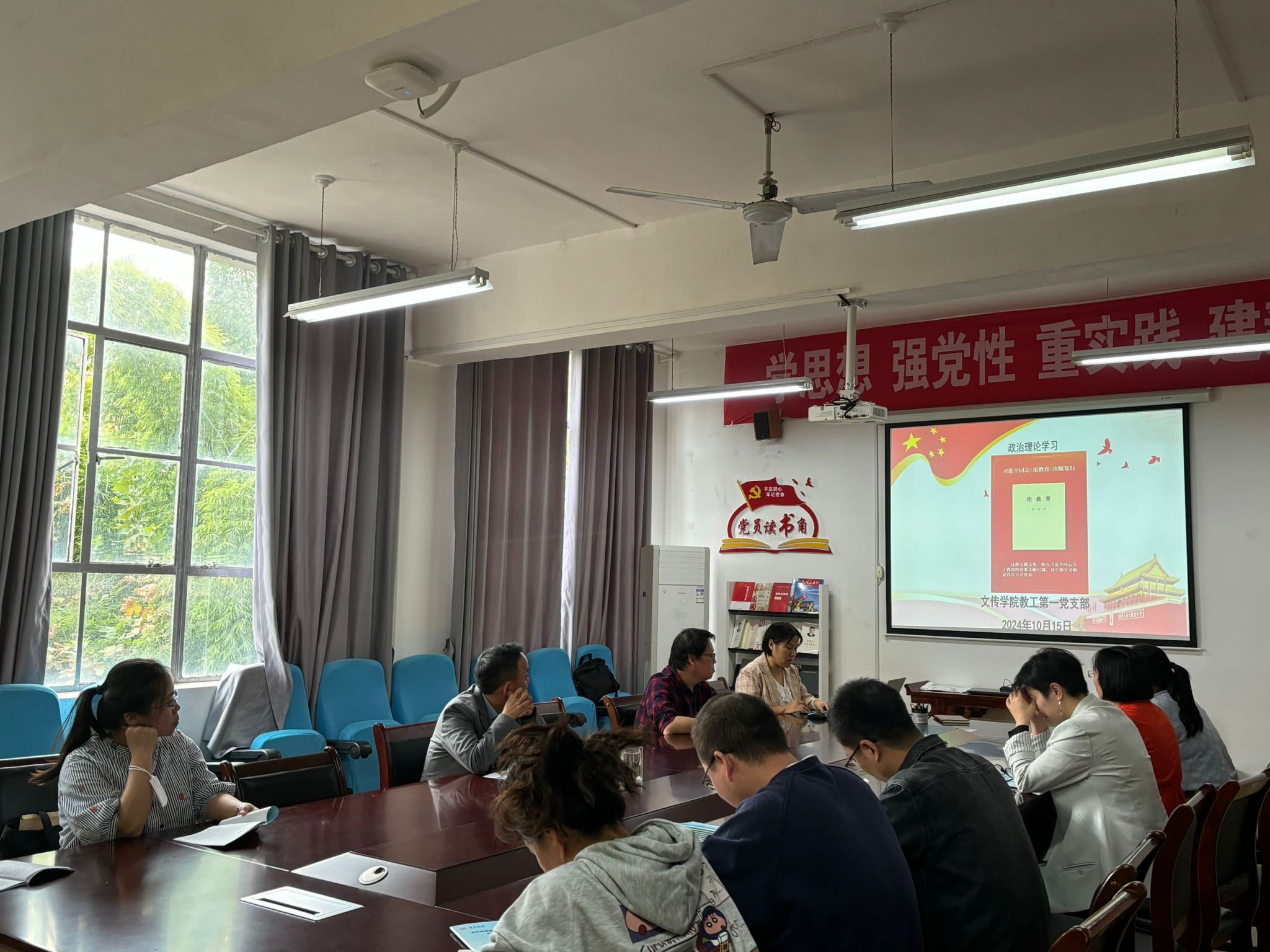 为进一步学习和理解习近平《论教育》的精神内涵,深刻领会习近平总书记关于教育的重要论述,2024年10月15日下午,pp电子网站教工第一支部组织全体党员开展“大力弘扬教育家精神,加快建设教育强国”10月主题党日活动,活动由支部书记韩文霞主持。