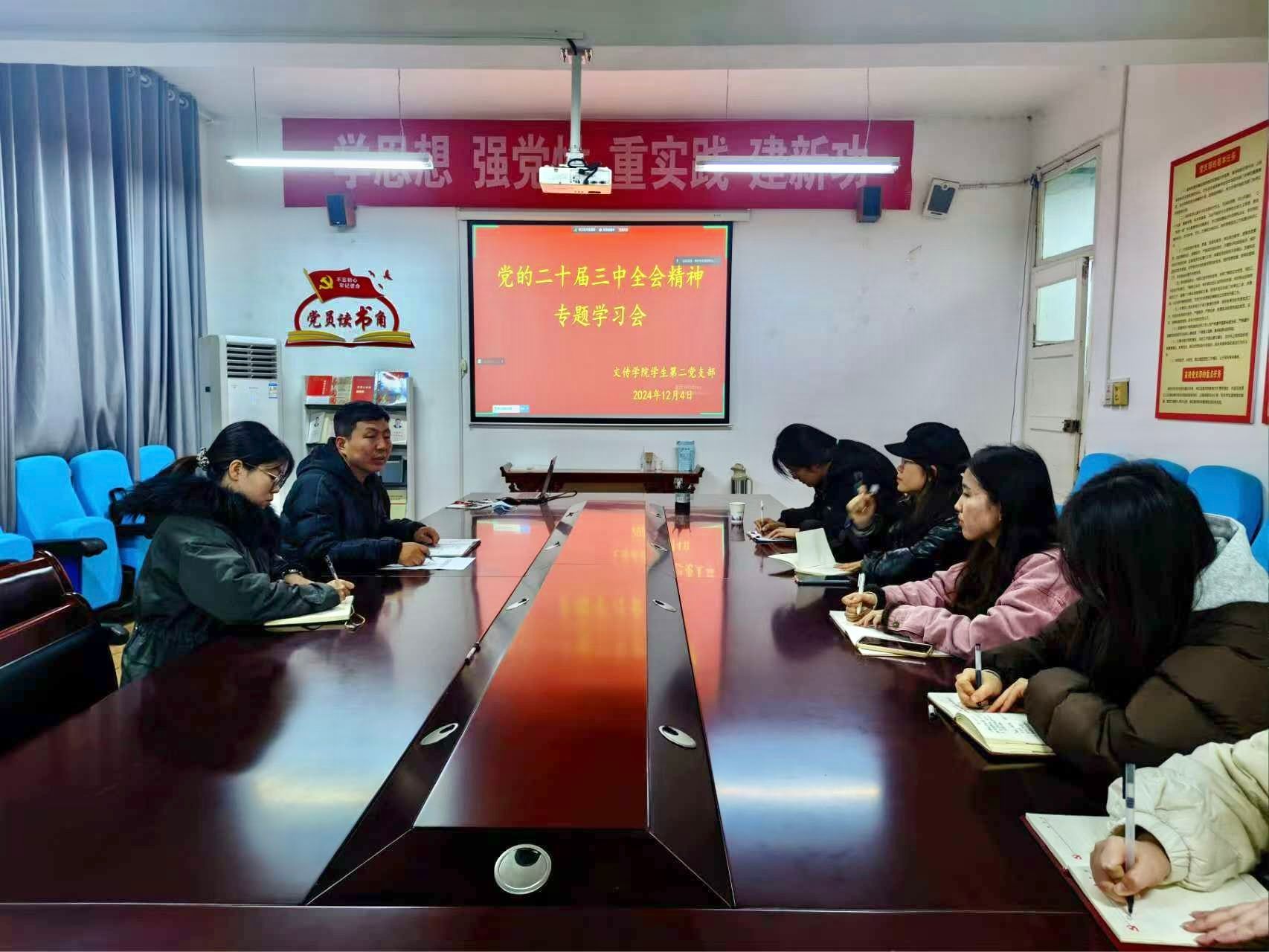 12月4日,pp电子网站学生第二党支部在2307会议室组织开展了党的二十届三中全会专题学习会。会议由党支部书记薛涛主持。