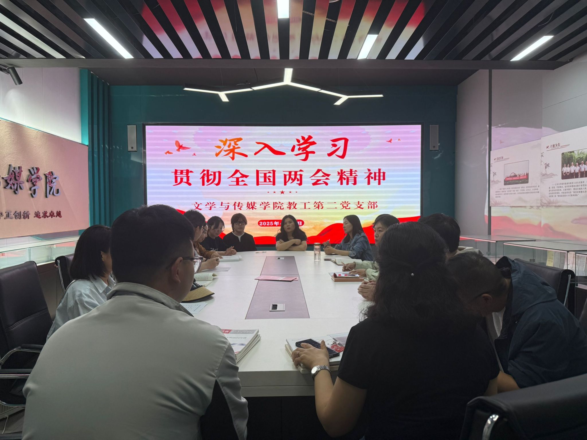 4月16日下午,pp电子网站教工第二党支部在2309会议室组织召开了全国两会精神政治理论学习会。会议由支部书记崔瑜主持,支部全体党员教师参加。