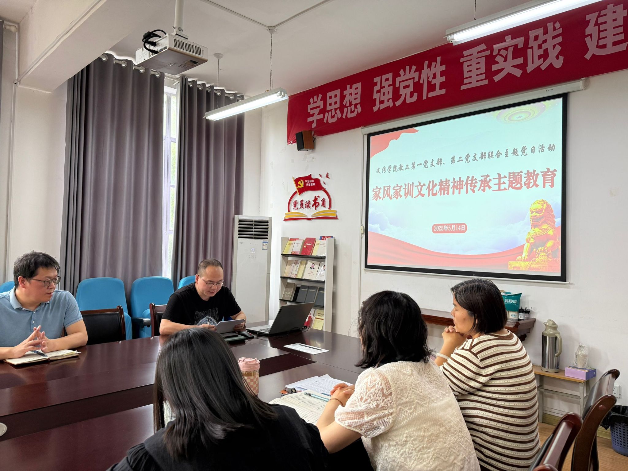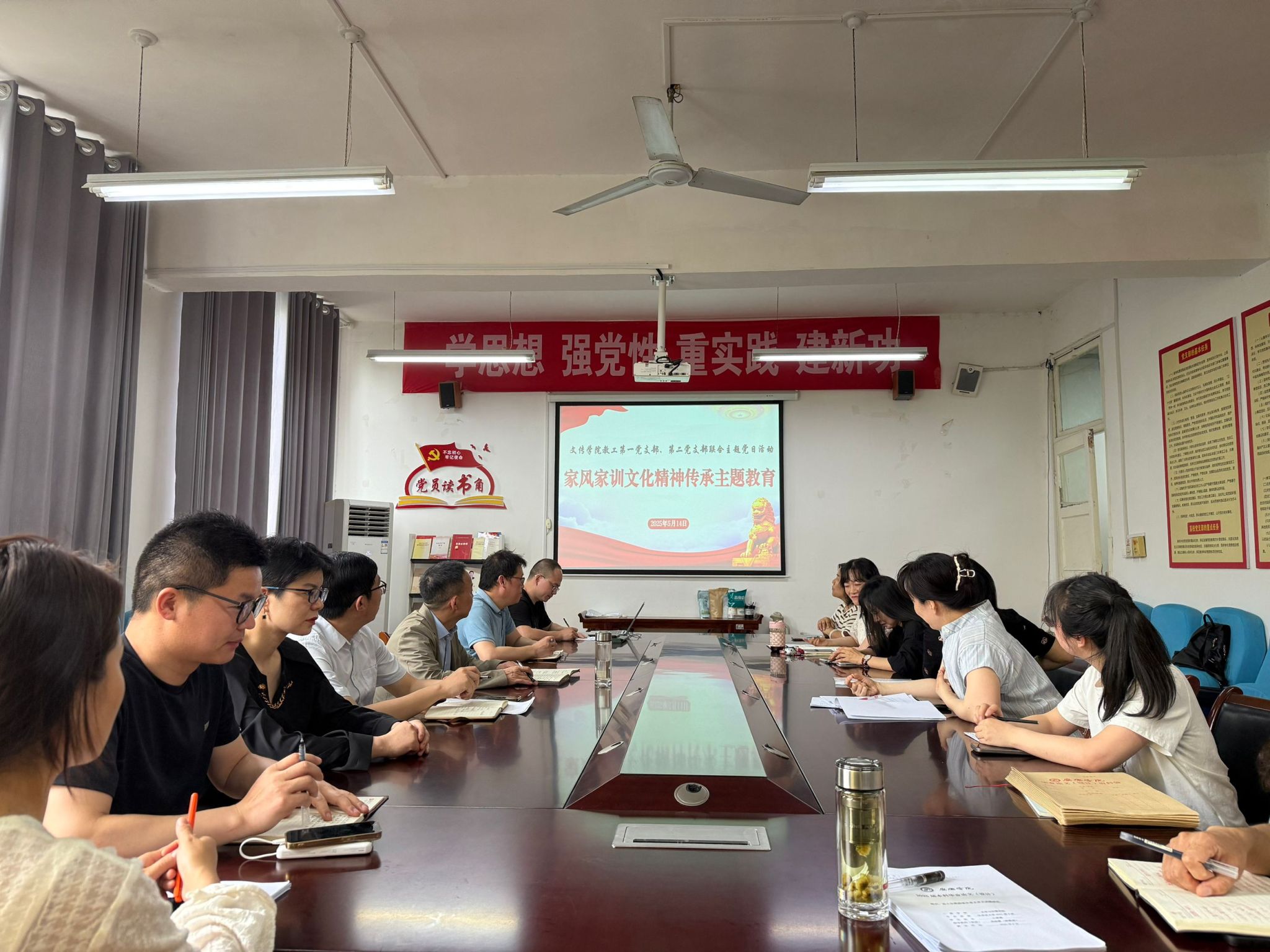 为深入学习贯彻习近平总书记关于注重家庭家教家风建设的重要论述,传承优良传统,弘扬时代新风,5月14日下午,pp电子网站教工第一、第二党支部在2307会议室联合开展“家风家训文化精神传承主题教育”主题党日活动,本次活动教工第一党支部书记韩文霞主持,谭诗民副教授主讲,全体党员教师参加。