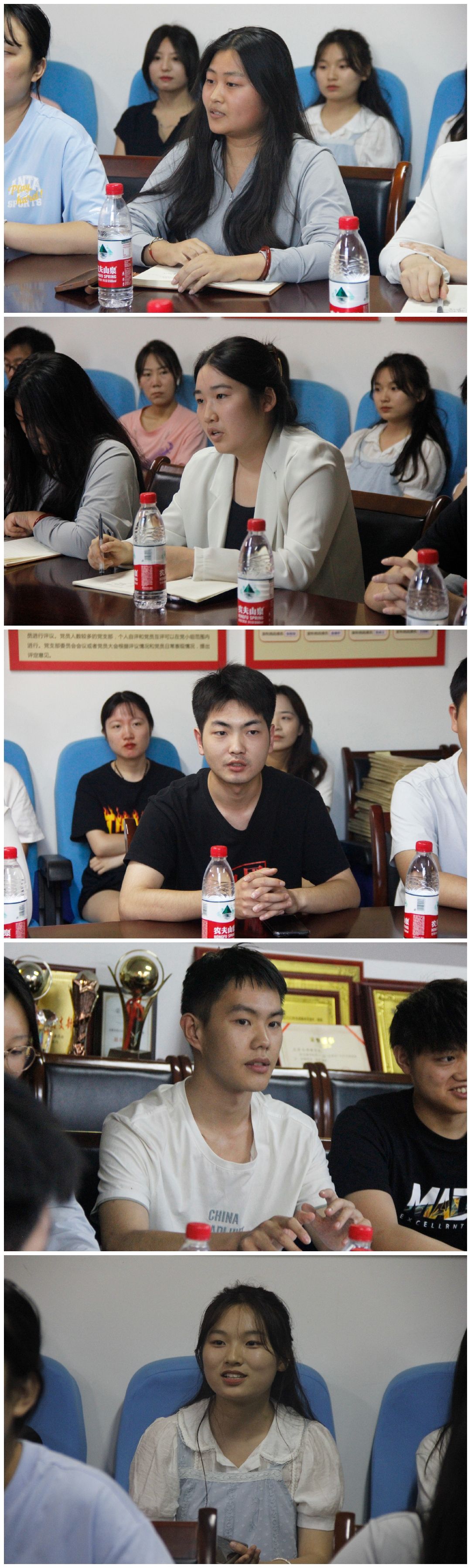 毕业生代表高楠、安奕辰、白欢庆、屈佳乐、姜泽宇、陈兴艳等二十余名毕业生代表纷纷发言。他们回忆了大学四年的学习和生活,对各位老师的教学给予高度评价,对老师们的辛苦付出表示感激,并从课堂教学、社团活动、教学管理等方面提出建议。