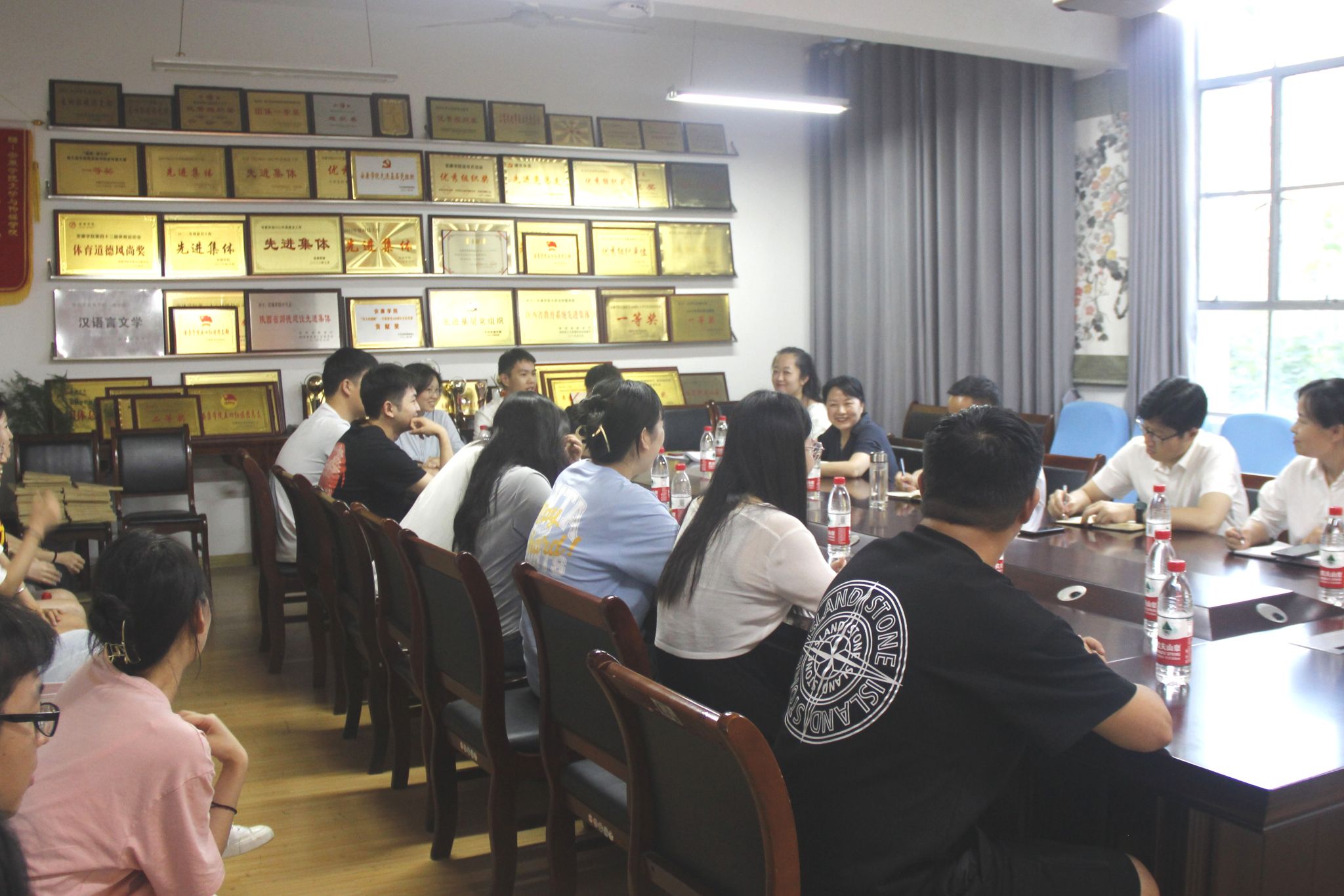 2023年6月30日晚,pp电子网站在2307室召开2023届毕业生座谈会。pp电子网站领导班子、毕业班辅导员及20余名毕业生代表参加了座谈会。