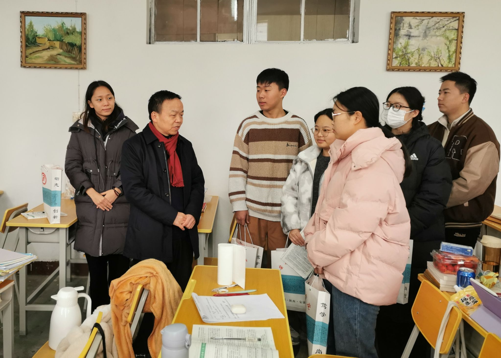 2024全国硕士研究生招生考试来临之际,为帮助考研学子们缓解压力、鼓舞斗志、增强必胜的信心,12月21上午学院领导班子和全体辅导员老师一行前往考研自习室慰问考研学生,助力考研学子达成所愿、顺利上岸