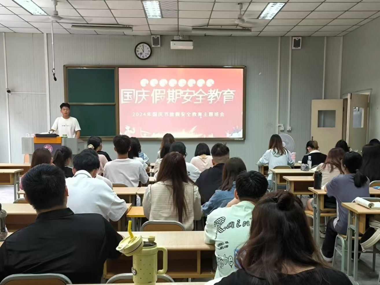 临近假期,辅导员老师们着重强调了国庆节期间的安全注意事项。包括交通安全,提醒同学们在出行时遵守交通规则;人身安全,告知同学们要远离危险区域,避免发生意外;财产安全,叮嘱同学们增强防范意识,警惕各类诈骗。要求同学们坚决维护国家政治安全、制度安全、意识形态安全,树立维护国家安全的自觉意识,欢度稳定祥和的国庆假期。