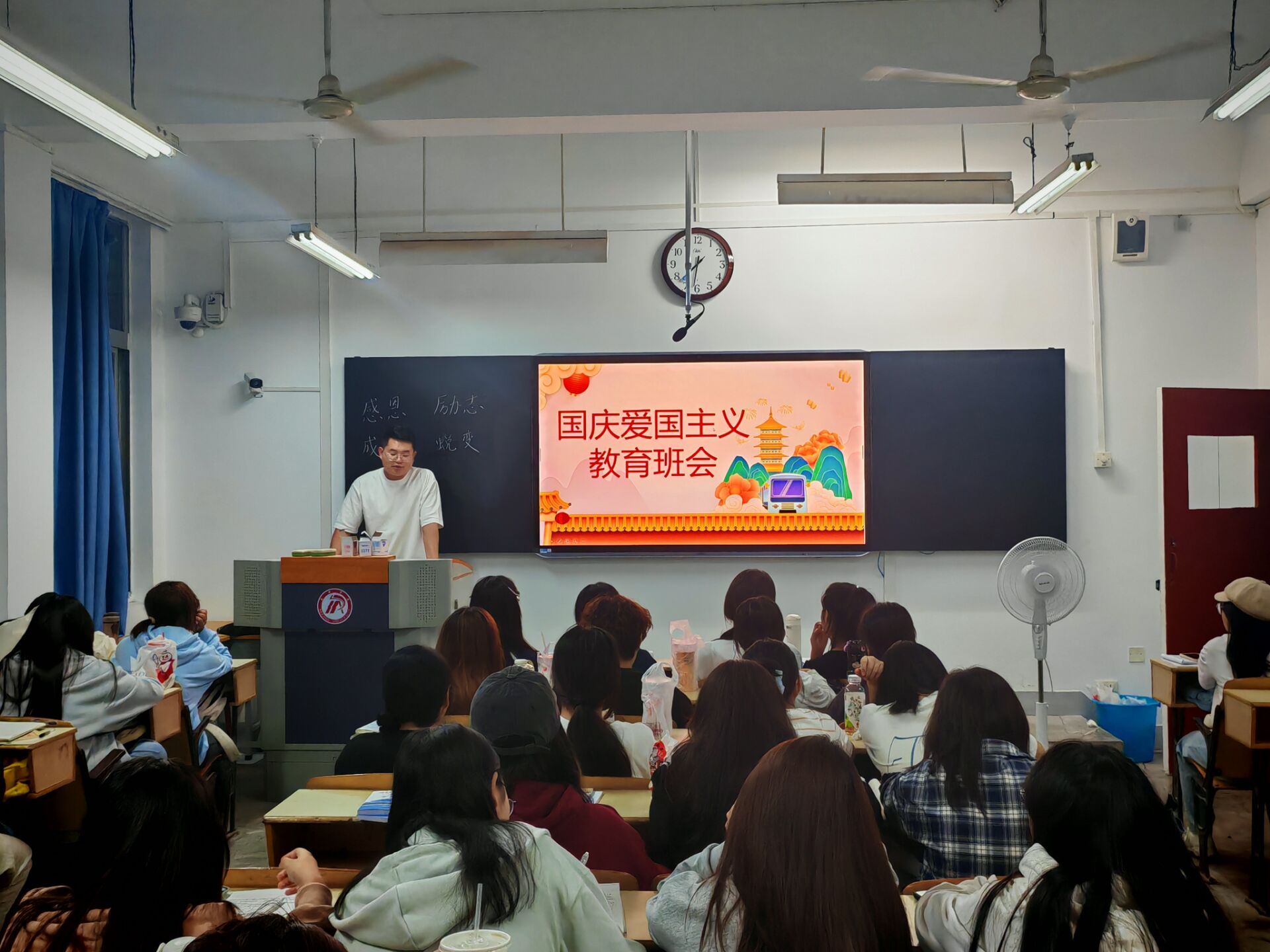 为弘扬爱国主义精神,增强学生的民族自豪感和国家安全意识,pp电子网站9月30日组织开展了爱国主义教育暨国庆节安全注意事项主题班会。