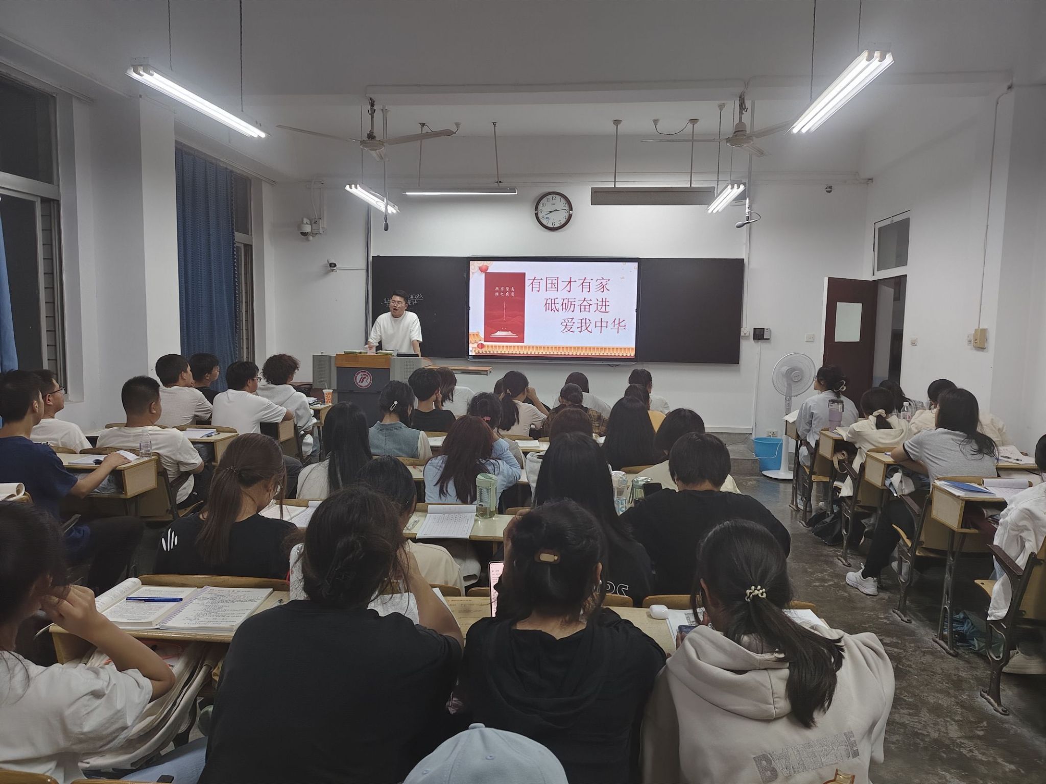 在主题班会上,各年级辅导员老师组织同学们认真学习了《爱国主义教育法》,通过详细解读法律条文,让同学们深刻认识到爱国主义教育的重要性、内涵以及在当代社会中的体现等多方面的意义。师生共同回顾了新中国成立75年以来的伟大成就,从新中国成立初期的百废待兴到如今在经济、科技、文化、外交等诸多领域取得的举世瞩目的成果。一帧帧画面、一组组数据,使同学们深切感受到祖国的日益强大,心中的爱国热情不断高涨。
