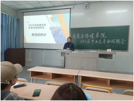 本次招聘会采取线上线下相结合的方式。参加现场招聘的企事业单位有安康中公教育、安康翔天托育服务有限公司。安康中公教育的教师就大学生应聘流程及注意事项进行简单介绍,并向在座毕业生抛出橄榄枝。安康翔天托育服务有限公司的招聘人员通过PPT展示、面对面交流等方式向同学们介绍公司企业文化、概况、发展方向、人员需求以及选择该企业的理由等,现场气氛十分融洽。