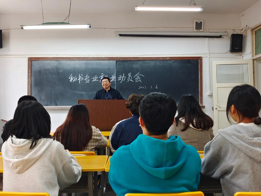 2023年3月6日,pp电子网站在2305教室召开了新学期就业推进会,辅导员邹棠华主持会议,秘书学2019级全体学生参加了会议。