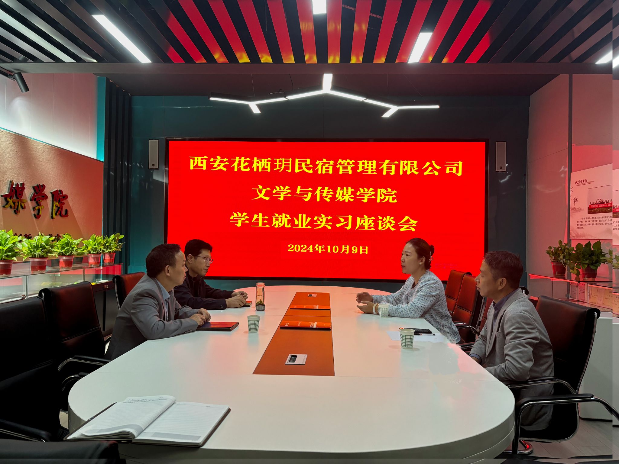 为进一步加强学院与企业之间的沟通与合作,为学生提供更好的实习和就业岗位,10月9日,pp电子网站与西安花栖玥民宿管理有限公司在江南校区2309会议室举行毕业生就业实习座谈会。西安花栖玥民宿管理有限公司总经理郭媛媛,项目负责人李楠,pp电子网站院长杨运庚、党总支书记芦伟出席参加本次活动。