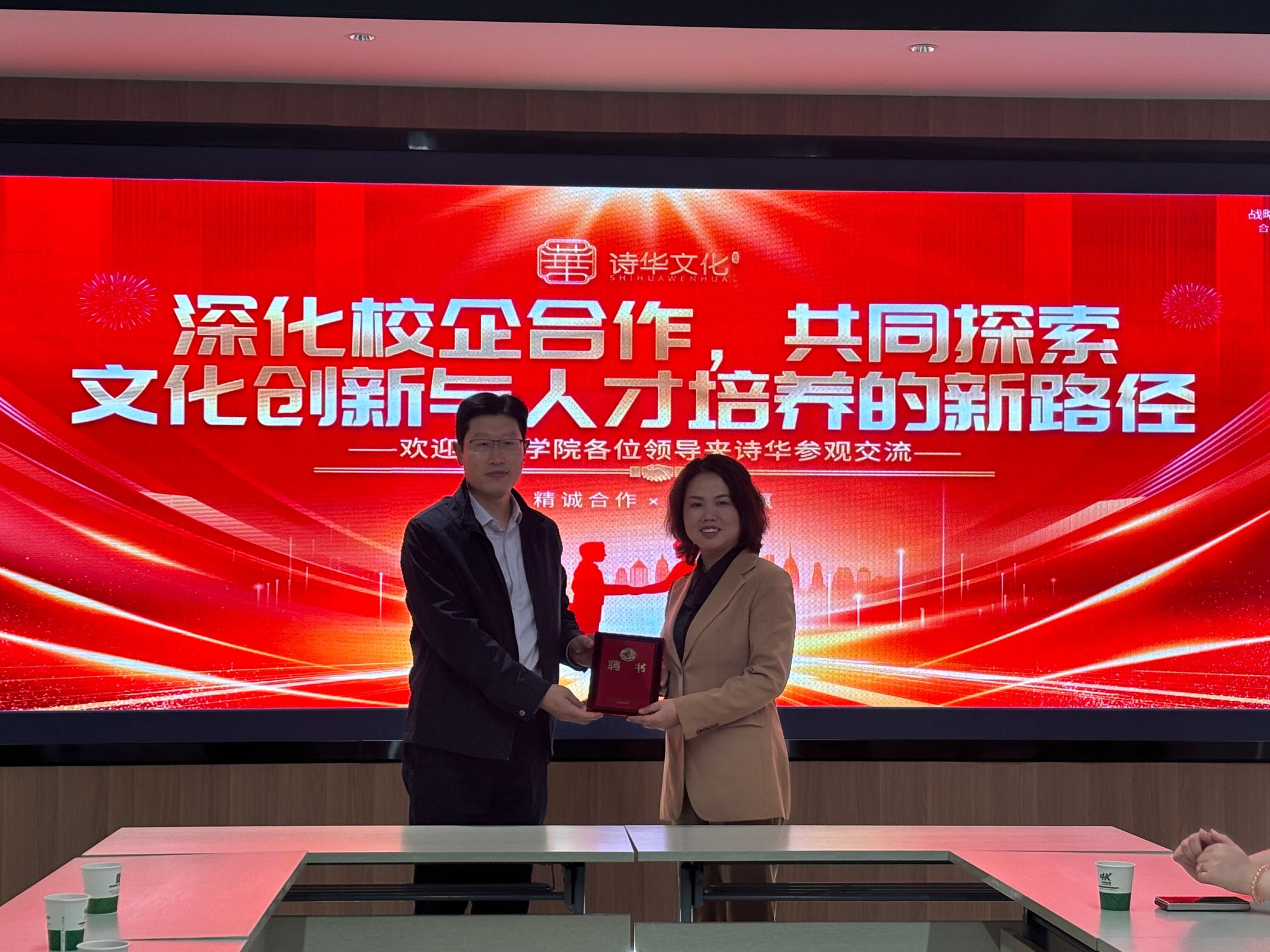 陕西诗华六一文化发展传媒有限公司总经理陈友群热情接待了pp电子网站一行人员,并带领参观了陕西诗华六一文化发展传媒有限公司。随后,双方就校企合作、人才培养等方面展开了深入的座谈交流。在交流中,双方积极探讨如何更好地实现学校与企业的优势互补,为培养适应社会需求的高素质人才共同努力。