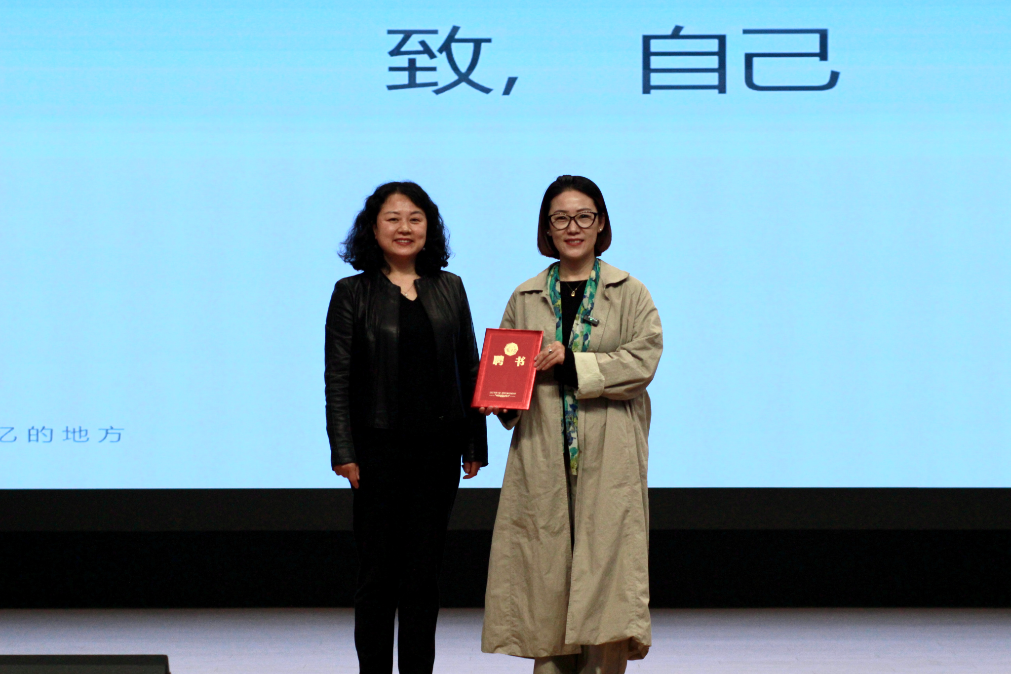 活动伊始,杨海蓉代表学院向郭媛媛女士颁发大学生创新创业指导老师聘书。