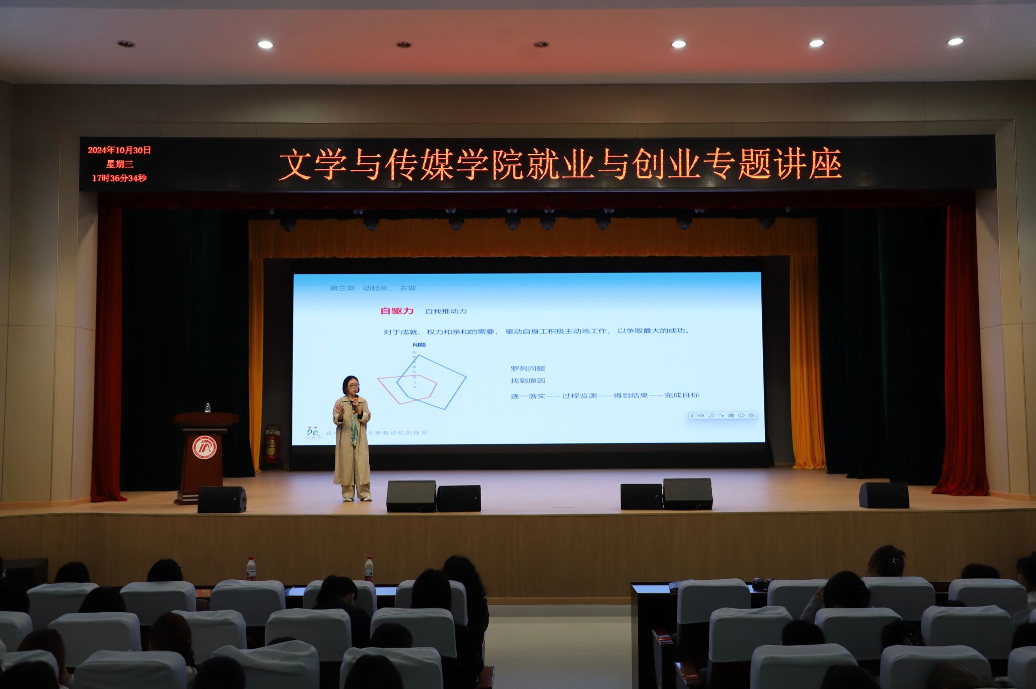 为贯彻落实国务院办公厅关于深化高等学校创新创业教育的实施意见,创新就业创业指导课程教学方式,10月30日下午,pp电子网站特邀陕西花栖玥民宿管理有限公司创始人郭媛媛在江南校区大礼堂为pp电子官网学生开展就业与创业专题讲座,学院党总支副书记杨海蓉、学工办(就业办)主任薛涛及2022级、2023级全体学生参会,本次活动由薛涛主持。