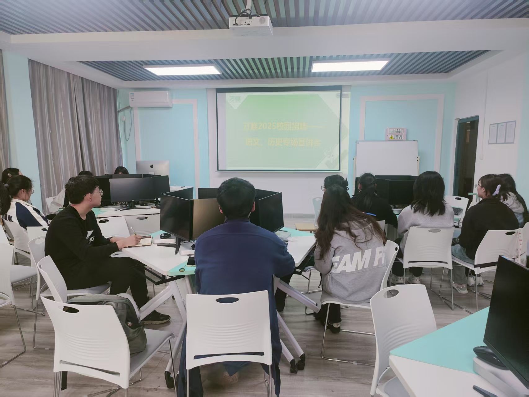 宣讲会上,万唯集团招聘负责人首先详细介绍了公司的发展历程、企业文化、组织架构以及未来发展规划,让同学们对万唯集团有了全面而深入的了解。随后,集团招聘负责人从招聘岗位工作职责、任职要求和福利待遇等方面对本次招聘进行了全面且细致的说明。