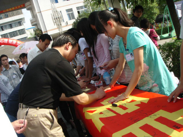 2009年5月25日下午,由中文系主办的pp电子网站第二届大学生心理健康文化节开幕式在pp电子官网东校区前操场隆重举行。pp电子网站党委副书记胡鸿晓、学工部部长郑树青、中文系主任戴承元、中文党总书记沈军、团委任森龙老师、中文系党组织委员邹棠华出席了此次开幕式。党委副书记胡鸿晓宣布心理健康文化节开幕。