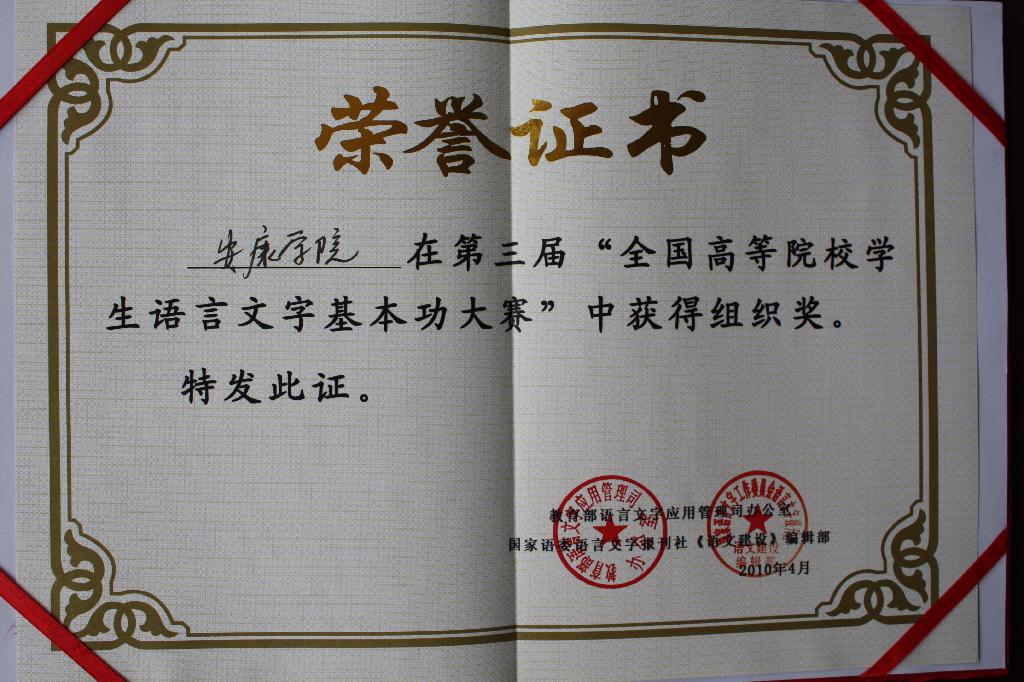 导航痕迹 首页 > 新闻通知 > 学院新闻 > 正文 学院新闻 通知公告 中文系在“第三届全国高等院校学生语言文字基本功大赛”中再获佳绩 发布人: 发布日期:2010年05月10日 阅读次数: 中文系汉语言文学、语文教育、文秘专业07级、08级、09级共670名学生于2009年12月在赵桃老师的辅导、组织下,参加了由教育部、国家语委主办的第三届全国高等院校学生语言文字基本功大赛。 本届大赛全国有300多所院校的12万学生参加,pp电子官网中文系有81名学生获奖,其中一等奖17人,二等奖27人,三等奖37人;在参赛的300余所院校中,pp电子官网荣获组织奖。这是pp电子官网中文系继前两届大赛获得的又一次好成绩。