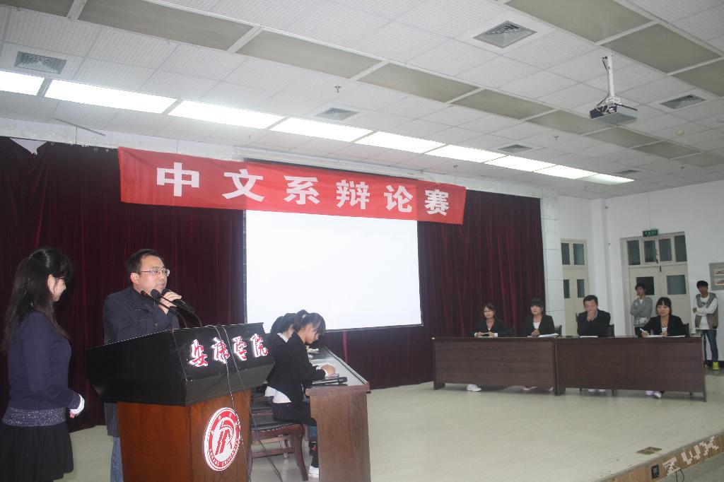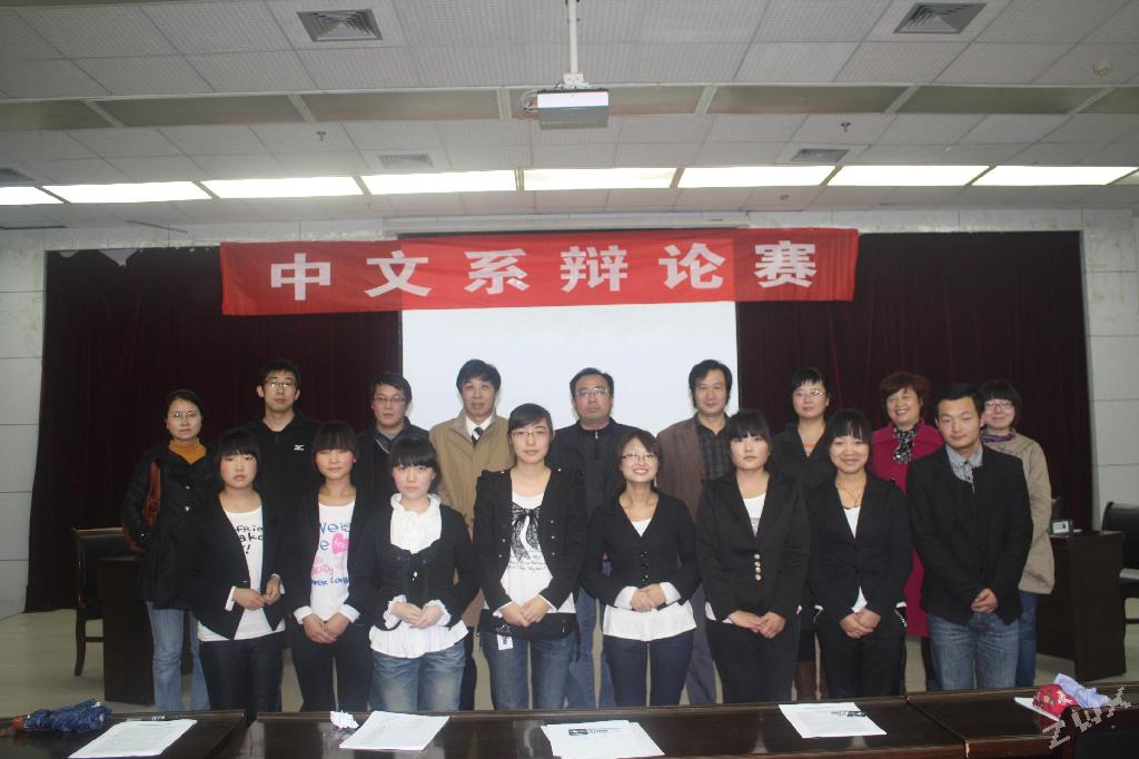 2011年11月3日晚7点,“2011年中文系辩论赛决赛”在我校图书馆六楼报告厅顺利举行。当晚莅临大赛现场的评委老师有李春平老师,雷升录老师,梁卫华老师,杨静老师,朱云老师以及我系全体辅导员老师。