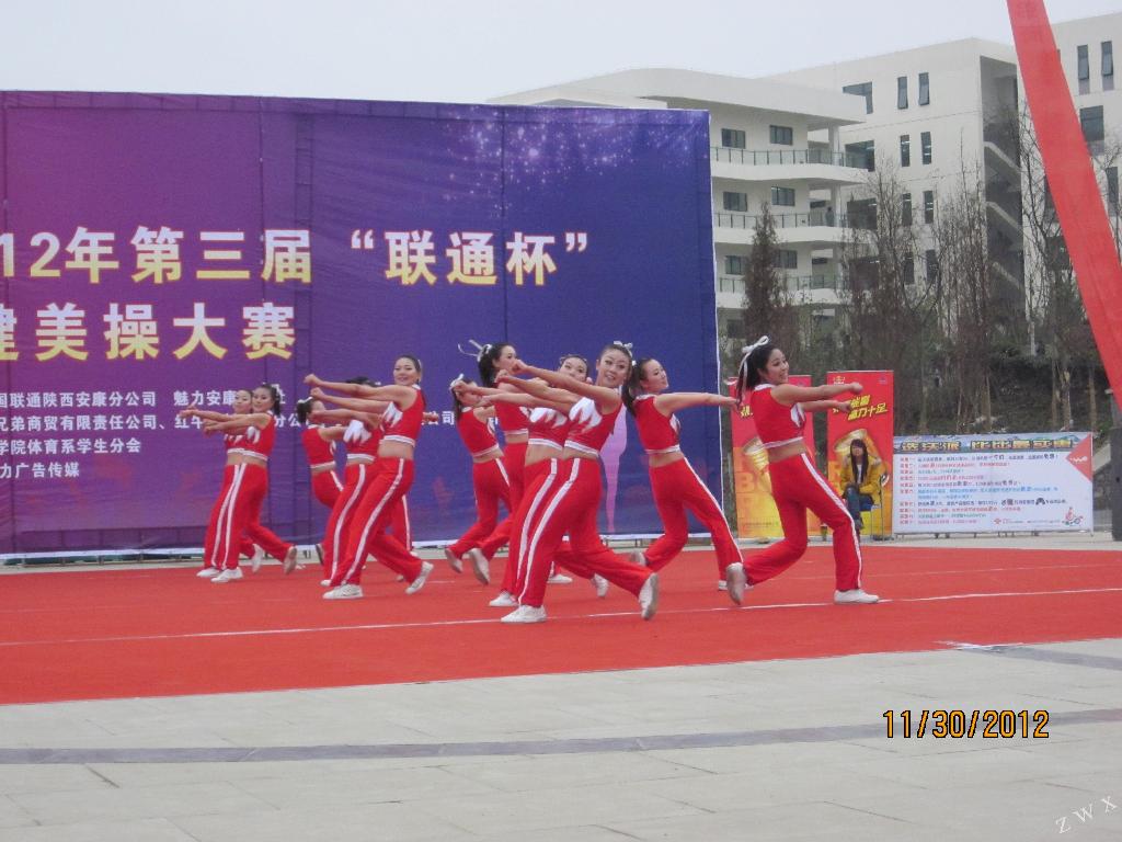 “和谐韵律、舞动青春,展现当代大学生风采”——pp电子网站第三届“联通杯”健美操大赛于2012年11月30日下午14:00在江北校区亲水广场隆重举行。我系健美操队在体育系老师和教练员的悉心指导下,经过近一个月的艰苦训练,以积极饱满的热情投入比赛,舞台上她们信心十足,精神饱满,充分展现了力与美的完美结合,博得评委及在场观众的阵阵掌声。最终我系在全院十一个院系中脱颖而出,在规定套路与自编套路两个项目中分别获得二等奖和三等奖的佳绩。本次比赛,充分展现了我系学生的精神风貌,极大带动了我系学生参加校园文化活动的热情。