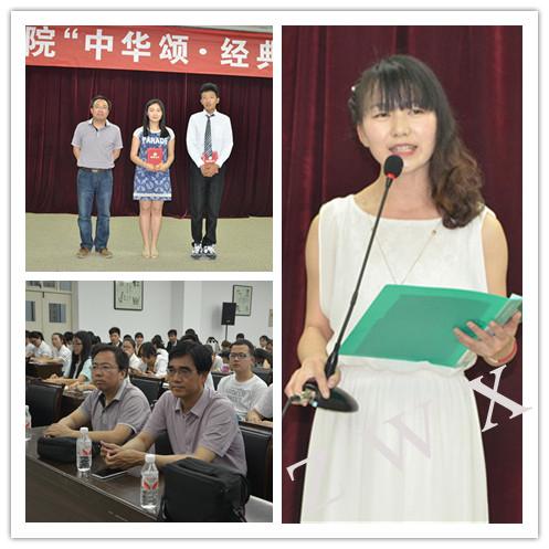 pp电子网站2015年“中华颂—经典作品诵读”活动于五月二十日晚在图书馆六楼报告厅落下帷幕。此次活动由校团委主办,中文系承办,前后历时一个多月,有十四个班近二百名学生参加。活动分班级诵读、预赛、决赛三个环节进行。五月二十日晚举办了中华经典作品诵读决赛,中文系党总支书记李岩,副主任梁卫华,辅导员邹棠华、沈菲亲临现场予以指导。