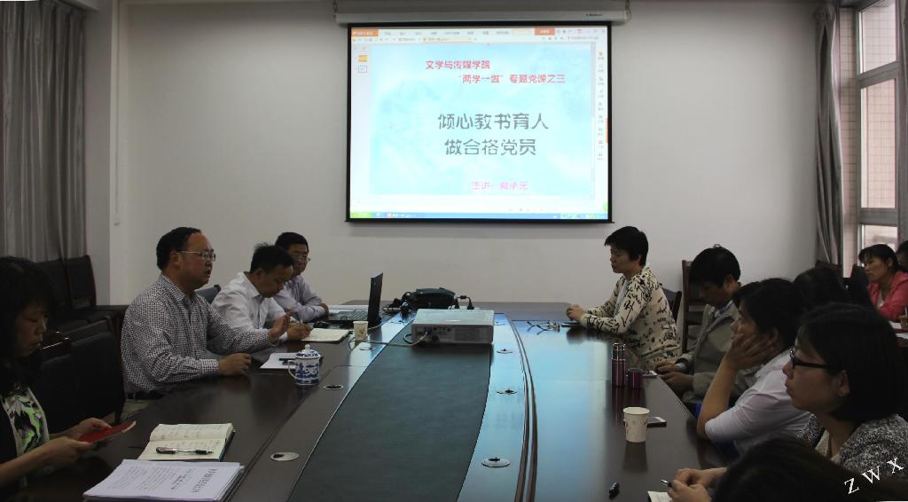 2016年6月3日,pp电子网站党总支在陕南民间文化研究中心开展“两学一做”专题党课学习,文传院党总支书记于咏梅和院长戴承元分别讲专题党课,文传院全体教工党员和学生党员参加了此次学习。