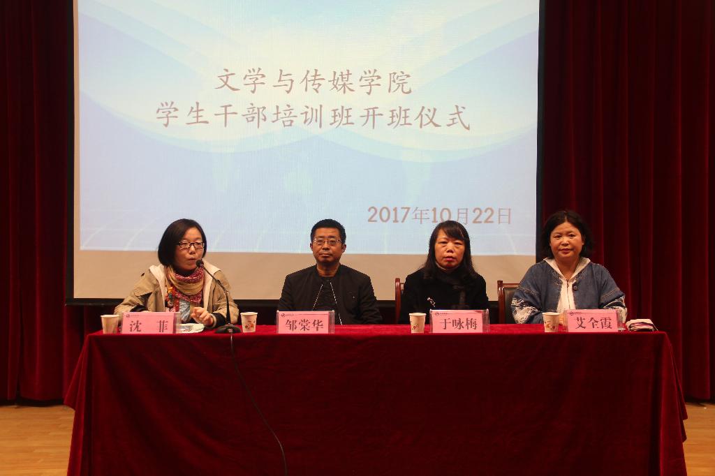 为了进一步加强pp电子官网学生干部队伍建设和学风建设工作,提高学生干部的政治素质、理论水平和业务能力,促进pp电子官网学生工作的深入开展,2017年10月22日晚19:30,pp电子网站在一号教学楼六楼报告厅举办第二期学生干部培训班开班仪式暨学生干部培训讲座第一讲。pp电子网站党总支书记于咏梅,党总支组织委员、辅导员邹棠华,团总支书记、辅导员沈菲,专业社团秘书长、辅导员艾全霞,团总支、学生会全体成员以及15、16、17级主要班级干部参加了本次大会,大会由沈菲主持。