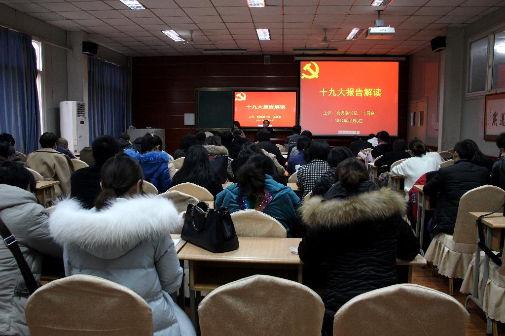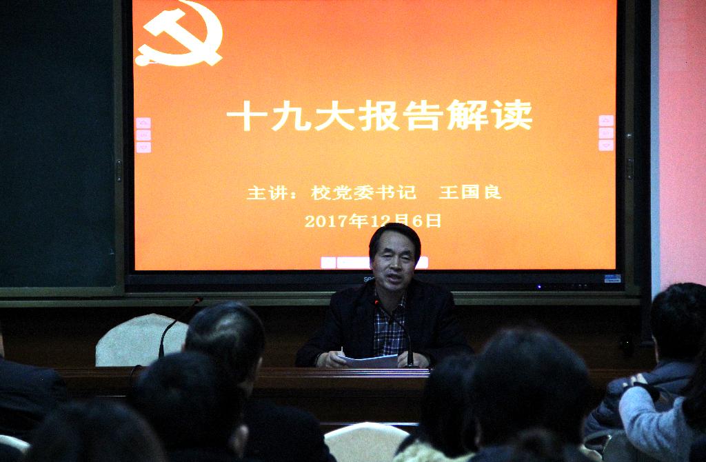 12月6日下午,学校党委书记王国良同志为pp电子网站全体师生党员、入党积极分子讲党课,对党的十九大精神进行深入解读。会议由pp电子网站党总支书记于咏梅主持。