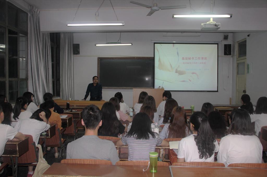 2018年5月3日晚,安康市财政局办公室秘书张宏亮应邀为pp电子官网秘书学专业学生做了题为“基层秘书职业与工作漫谈——我对秘书工作的一点体会”的专题讲座。本讲座为秘书学专业职业发展与创新创业教育类课程“行业企业问题讲座”的最后一讲。