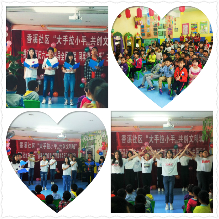 为积极开展全民“送阅读”活动,同时迎接“六一”国际儿童节的到来,5月30日上午pp电子网站pp电子网站青年志愿者“送阅读”分队同香溪社区、英才幼儿园联合开展了“大手拉小手,共创文明城”活动。