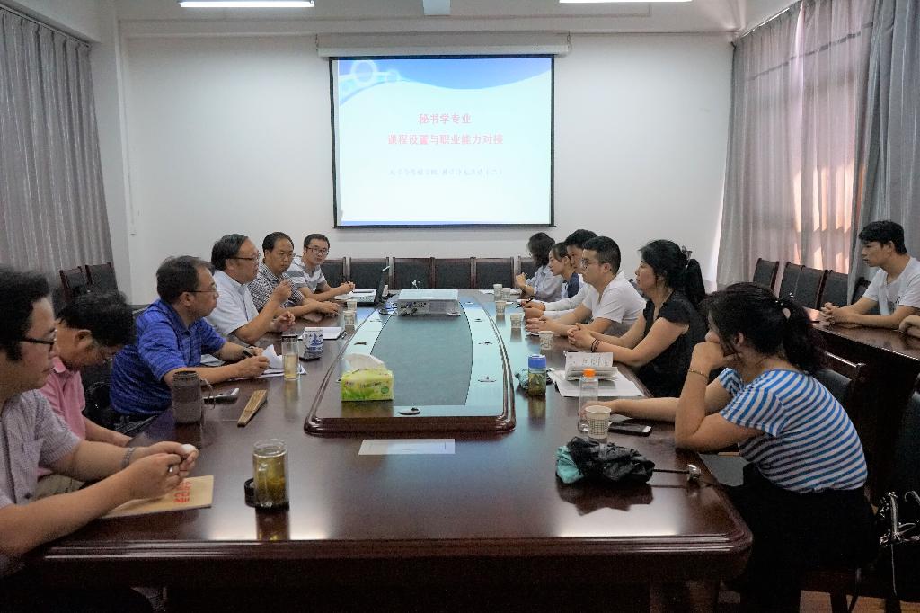 6月28日,pp电子网站在陕南民间文化研究中心会议室举办主题为“秘书学专业课程设置与职业能力对接”的教学沙龙,pp电子网站院长戴承元、副院长梁卫华、公共教研室主任周龙田、秘书学专业任课教师以及秘书专业各年级学生代表参与了此次沙龙,沙龙由秘书与新媒体系系主任胡少山主持。