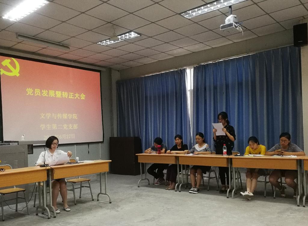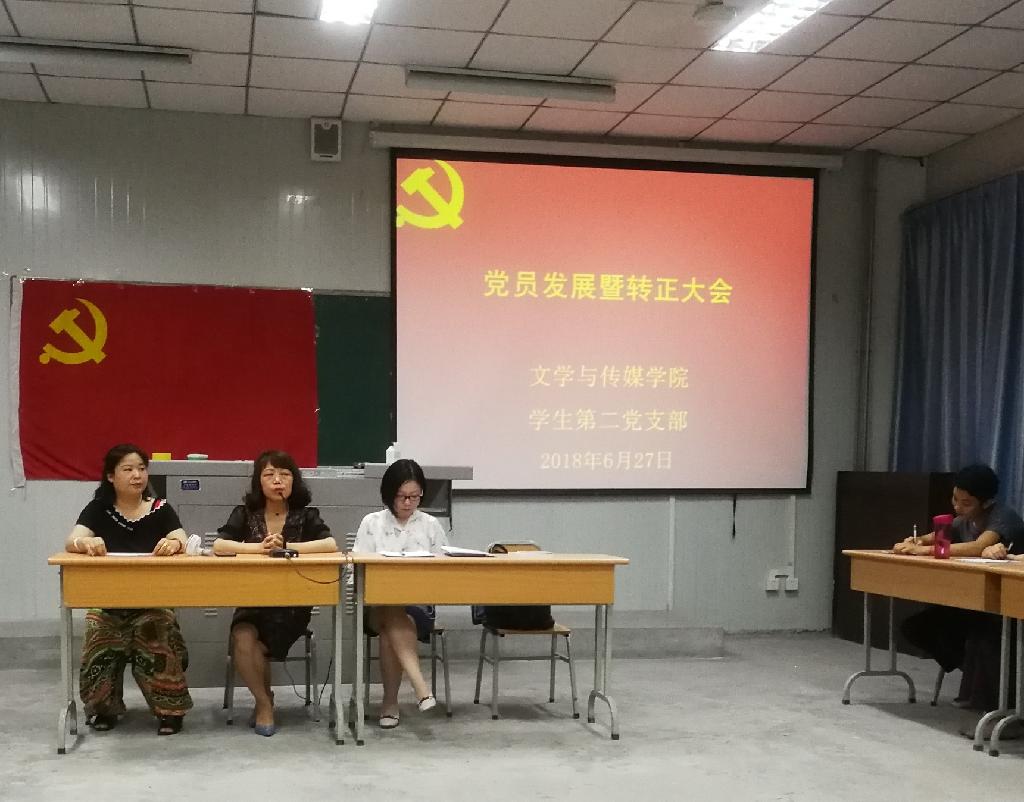 2018年6月27日下午,pp电子网站学生第二党支部在1017教室召开接收中共预备党员暨中共预备党员转正大会。pp电子网站党总支书记于咏梅、学生第二党支部书记沈菲、学生第二党支部全体党员参加了本次会议。会议由沈菲主持。