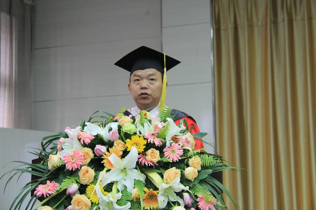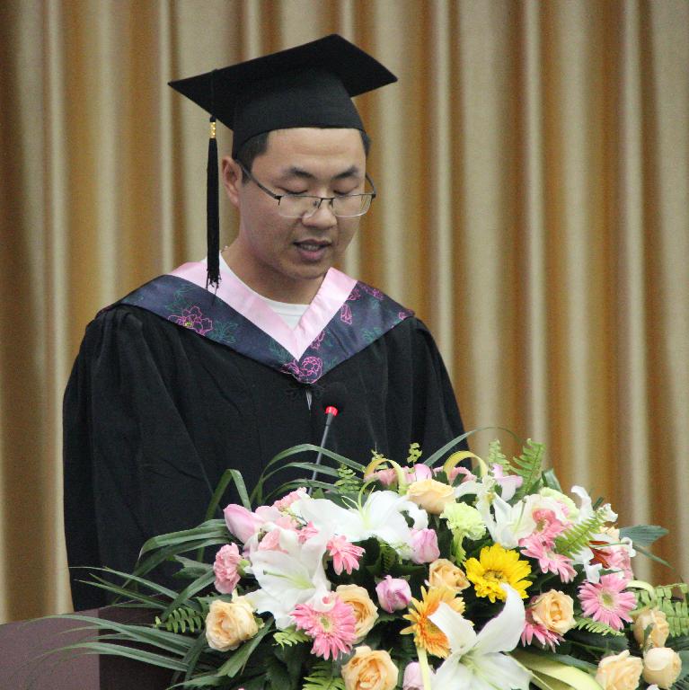 教师代表朱云围绕“人生理想”这一主题,同毕业生们分享了个人的人生经历与感悟。他希望毕业生们能够奋力实现个人的人生价值,在以后的人生中,以孔子“君子和而不同”自勉,既要学会团结和欣赏他人,更要学会独立的思考并自强不息。